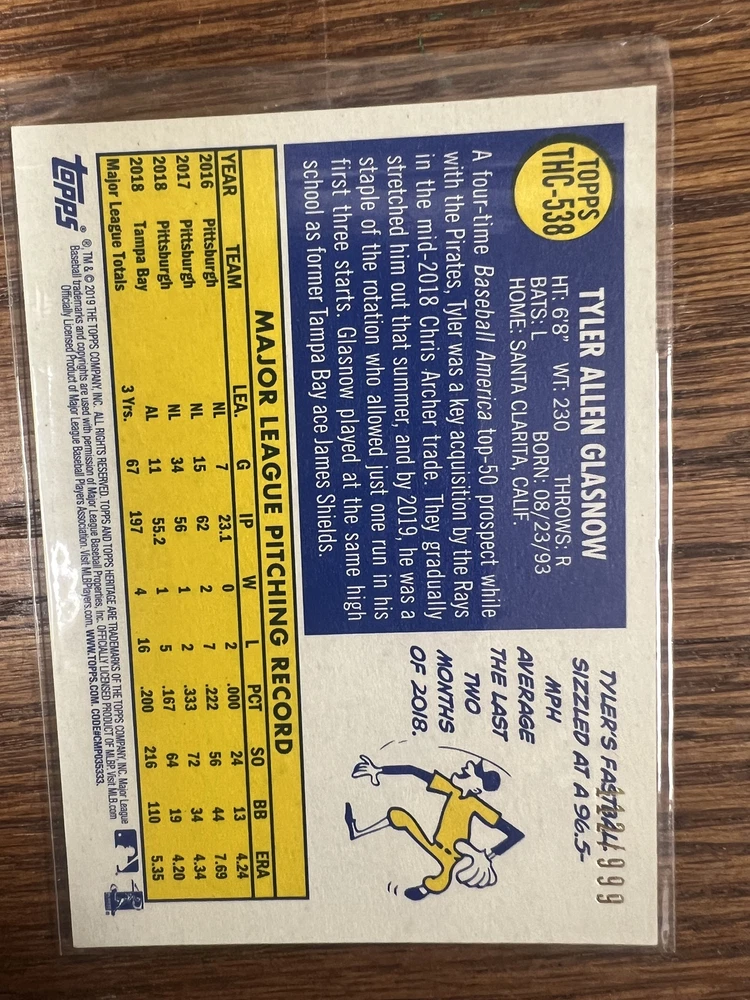 Chrome Tyler Glasnow #THC-538 2019 Topps Heritage Shipping will be $4.00 for the first card within the United States, and free for every card after that. I do ship worldwide at a cost of $15.00, every additional card is free. Thanks for checking out my listing, and be sure to look at my other cards currently up for sale!