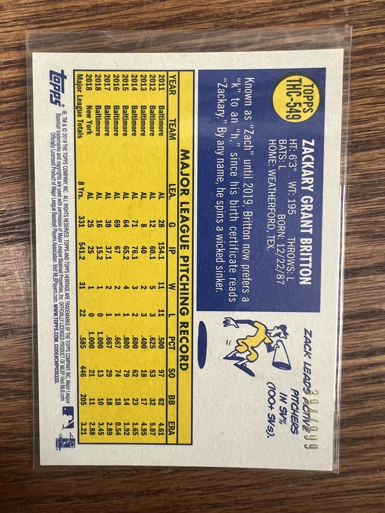Chrome Zack Britton #THC-549 2019 Topps Heritage Shipping will be $4.00 for the first card within the United States, and free for every card after that. I do ship worldwide at a cost of $15.00, every additional card is free. Thanks for checking out my listing, and be sure to look at my other cards currently up for sale!