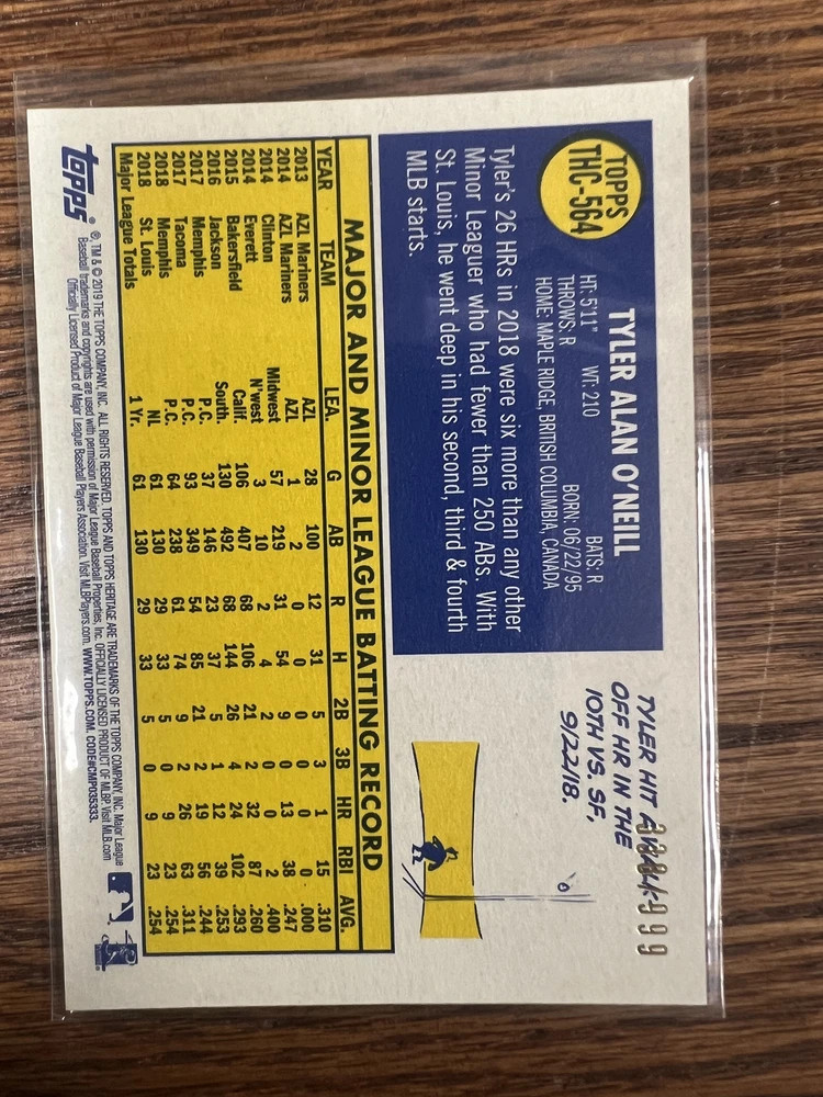 Chrome Tyler O'Neill #THC-564 2019 Topps Heritage Shipping will be $4.00 for the first card within the United States, and free for every card after that. I do ship worldwide at a cost of $15.00, every additional card is free. Thanks for checking out my listing, and be sure to look at my other cards currently up for sale!