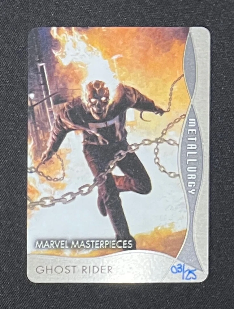 2020 MARVEL MASTERPIECES # 30 GHOST /25 METALLURGY INSERT CARD. CASE HIT METAL CARD M-30 IS IN GREAT (NM/M) OR BETTER. ALL MY ITEMS COME FROM A SMOKE-FREE HOUSE. SHIPMENT WILL BE SENT IN 2 DAYS OF PAYMENT. I WILL SHIP THIS CARD IN THE GREATEST OF CARE. BUYERS OUTSIDE OF THE CONTINENTAL U.S. MAY HAVE TO PAY EXTRA FOR SHIPPING. I DO OFFER COMBINE SHIPPING RATES. SO PLEASE CHECK OUT MY OTHER ITEMS. FEEL FREE TO MESSAGE ME WITH ANY QUESTIONS. THANKS FOR LOOKING AND GOOD LUCK.