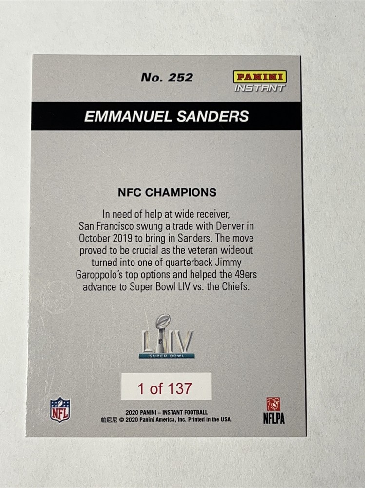 2020 Panini Instant Emmanuel Sanders NFC Champions Card 137/137