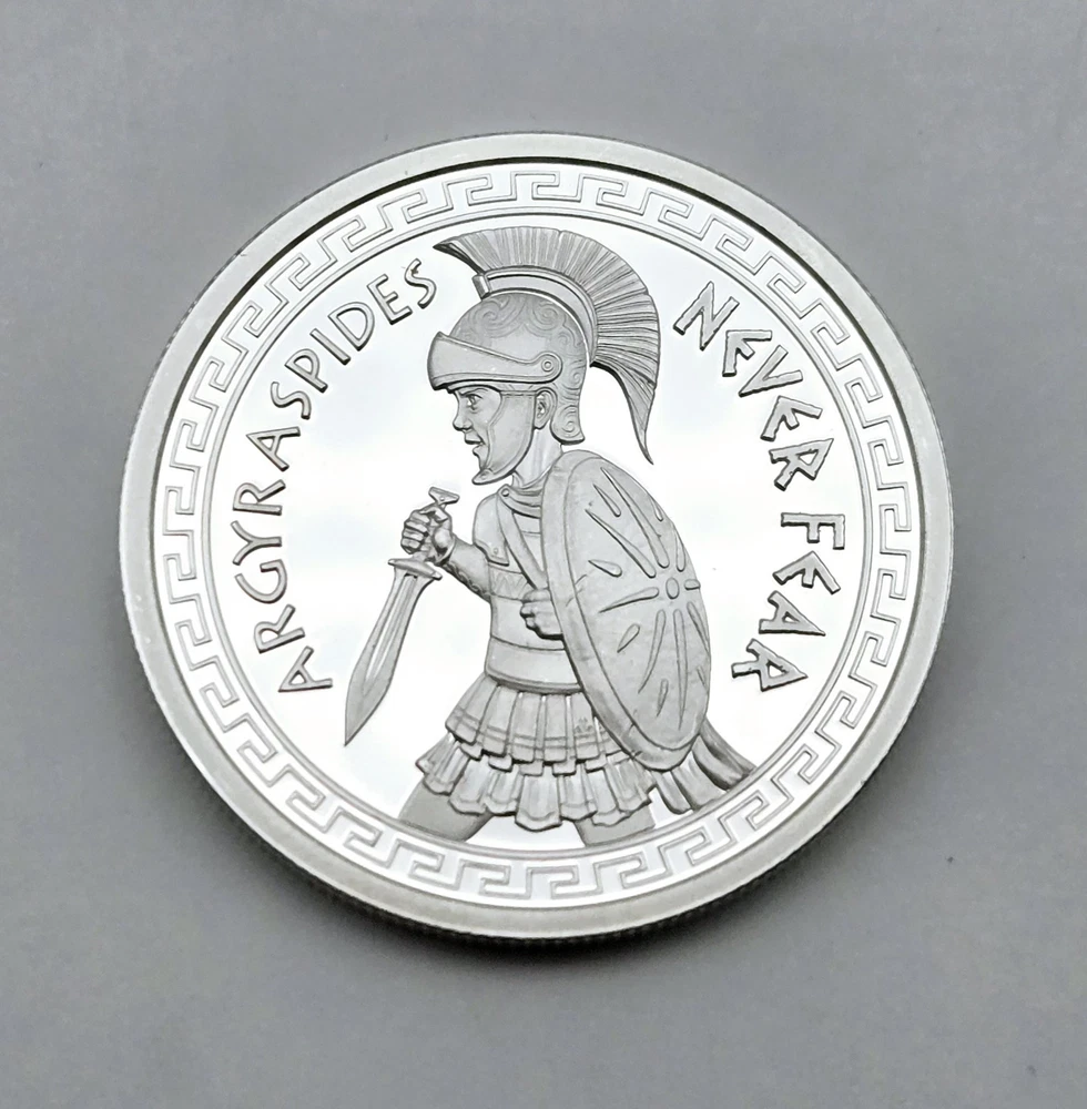 Home2021 1oz NEVER FEAR ARGYRASPIDES .999 PROOF ROUND SILVER SHIELD SPARTAN COIN