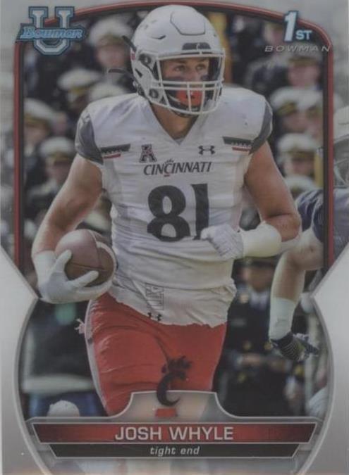 brand:ToppsTeam:Cincinnati BearcatsPlayer/Athlete:Josh WhyleManufacturer:ToppsSport:FootballLeague:National Collegiate Athletic Association (NCAA)Season:2022Set:2022 Bowman University ChromeFeatures:Rookie, Base Set, Parallel/VarietyParallel/Variety:RefractorCard Number:89Series:Bowman University Chrome