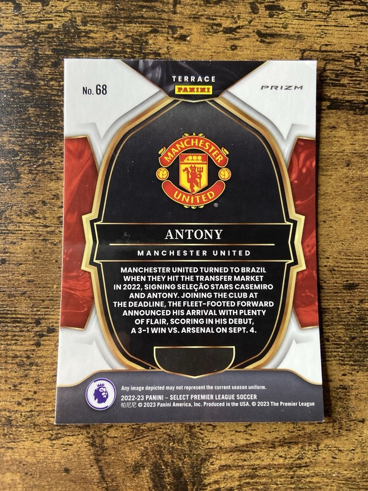 ? Delivery Options Available You can choose between Tracked and Untracked delivery at checkout: Tracked Delivery: Highly recommended for peace of mind. You'll receive a tracking number to monitor your parcel every step of the way. Untracked Delivery: A more budget-friendly option, but please note?once it's dispatched, I have no way to locate or recover the item if it goes missing. For valuable or time-sensitive items, Tracked delivery is the safer choice. I want your item to reach you smoothly, and tracking helps ensure that. This is a 2022-23 Panini Select Premier League Antony Pink Ice Prizm #68 trading card featuring the Manchester United player. It is a sports trading card with a focus on football and the Premier League. The card is part of the base set and includes an insert with a pink ice parallel/variety. The card is a great addition to any sports memorabilia collection, especially for fans of Manchester United and Antony. It is manufactured by Panini and is an excellent example of their attention to detail. The card is from the 2022-23 season and is sure to be a valuable item for any collector. I offer both tracked and untracked postage options for your convenience. If you choose non-tracked shipping , please be aware that I cannot accept responsibility for any lost or delayed items once they?ve been dispatched. I will always do my best to ensure safe delivery by securely packaging your order and clearly labelling the address. ? International Buyers: A customs declaration label will be provided for all international shipments, but please note that non-tracked delivery carries the same risks as above. I recommend selecting a tracked option for peace of mind. I always take care to pack items securely and ship promptly, but please remember that once an item leaves my hands, I can only do my best ? and postal delays or issues are beyond my control. Thanks for understanding, and feel free to get in touch if you have any questions before buying! I offer both tracked and untracked postage options for your convenience. If you choose non-tracked shipping , please be aware that I cannot accept responsibility for any lost or delayed items once they?ve been dispatched. I will always do my best to ensure safe delivery by securely packaging your order and clearly labelling the address. ? International Buyers: A customs declaration label will be provided for all international shipments, but please note that non-tracked delivery carries the same risks as above. I recommend selecting a tracked option for peace of mind. I always take care to pack items securely and ship promptly, but please remember that once an item leaves my hands, I can only do my best and postal delays or issues are beyond my control. Thanks for understanding, and feel free to get in touch if you have any questions before buying!