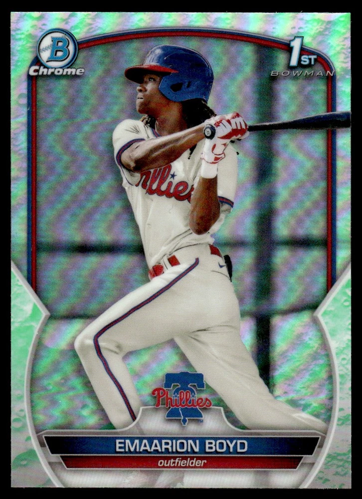 About Me Other Listings Feedback Add to Favorites Contact Me Cobos Cards and Collectibles 2023 Bowman Chrome Prospects Lunar Emaarion Boyd Philadelphia Phillies #BCP-128 No stock photo / These are real scans or pictures Details Description: Emaarion Boyd Category: Baseball Year: 2023 Product: Bowman Chrome Prospects Lunar Team: Philadelphia Phillies Card Number: BCP-128 Dimensions: 3½" x 2½" SKU: BL B0050 R02 C (3) Payment Card Condition is Raw, and can vary. These cards may or may not be for grading purposes do to flaws. Please look at the pictures for true condition. Shipping Cobos Cards Combined Shipping PolicyAt Cobos Cards, we strive to make your shopping experience as smooth as possible. Here's how our combined shipping works:Discounted Combined Shipping: Enjoy combined shipping at just $4 Dollar Base with $0.50 for each additional item purchased within 7 days of one another.Automatic Convenience: Shipping costs are automatically combined at checkout—no need to request a combined invoice!Maximum Shipping Cap: No matter how many items you order, shipping costs will never exceed $20.00 for eligible items in a single order.Payment Requirements: To qualify for combined shipping discounts, all items must be paid for in a single transaction.eBay Checkout Limit: Please note that eBay currently limits checkout to a maximum of 40 items per transaction.Thank you for choosing Cobos Cards for your collecting needs! If you have any questions, feel free to reach out.Additionally ( We use an AI system to list thousands of cards at a time therefore every once in a while the listing title might not be accurate. The picture of the card will always be the card you will receive) Listing By Kronocard trading cards software v2.8.2.3