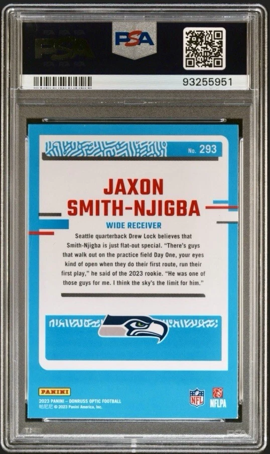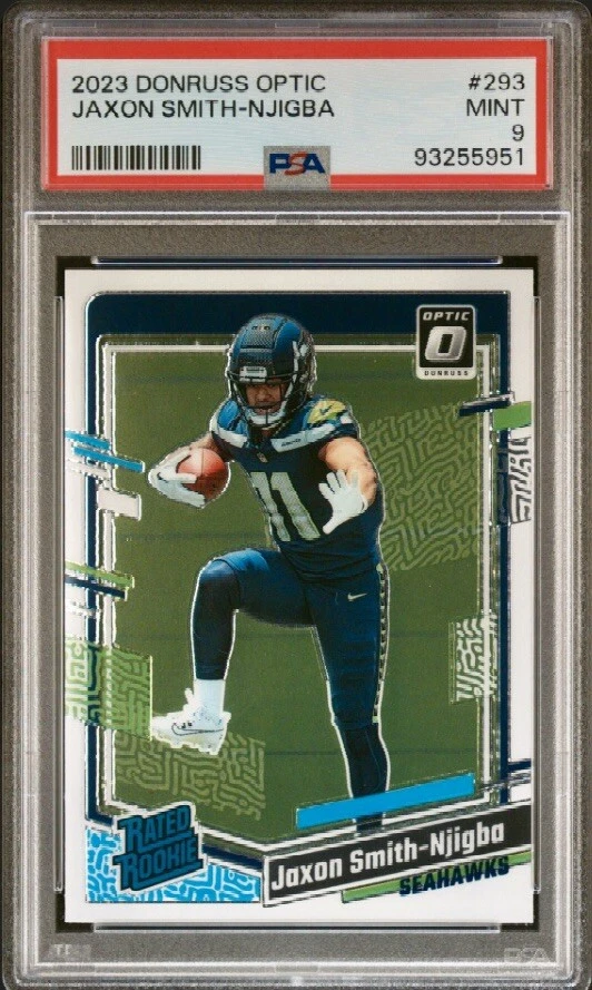 Jaxon Smith-Njigba 2023 Panini Donruss Optic Football Rated Rookie Base RC #293. Condition is Ungraded. Shipped with eBay Standard Envelope for Eligible Items up to $20.