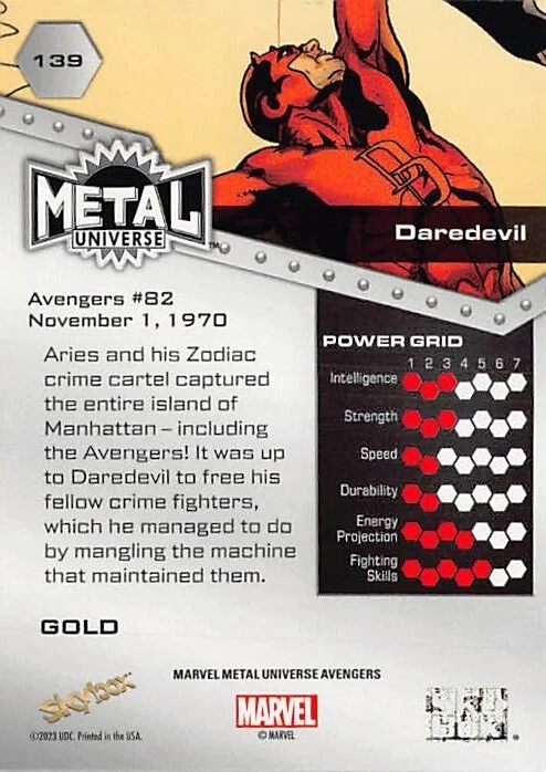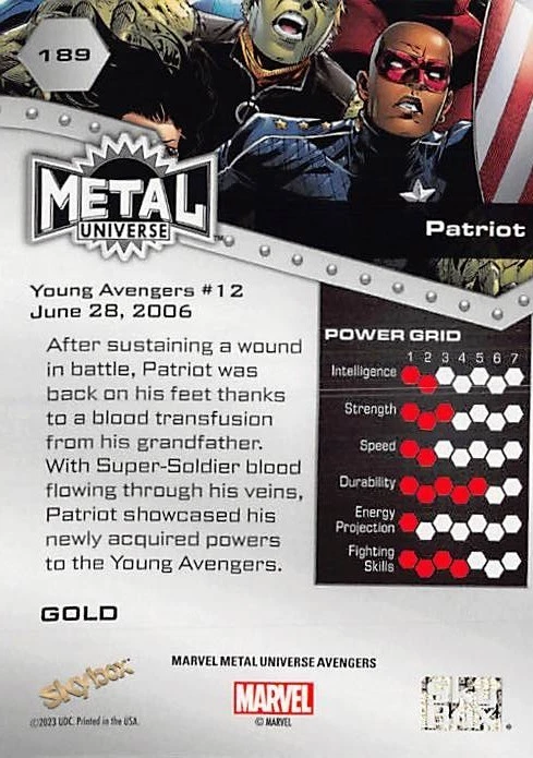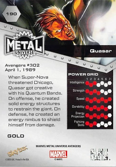 Dive into the Marvel Universe with the 2023 UD Marvel Metal Universe Avengers Gold Parallel Pick your Hero card. This premium collectible, crafted by Upper Deck, features the iconic Avengers in a stunning gold parallel variety, adding a luxurious touch to your collection. Each card celebrates the heroism of the Avengers with intricate artwork and design, embodying the spirit of the franchise. Whether you're a seasoned collector or just starting, this card is a must-have to honor your favorite Marvel protectors. Select your favorite hero and bring home the golden excitement of the Marvel Metal series. Thank you for your interest in our items on e-bay. Item: The item you receive will be the one in the picture, unless you are purchasing from a bulk / you choose lot. We do not grade these items so please inspect the picture closely to verify the condition of the item. Items in a bulk listing may not be the one pictured depending on quantities, but should reach the excellent condition threshold Most Items are NM/Mint and/or pack fresh, but some items may have some wear. We do not sell items in poor condition unless it is noted under condition. We mark everything else excellent condition (not NM) because opinions on an items condition varies greatly. All items are authentic, but we did have a run of fakes get by us from a large collection we purchased. Please notify us immediately if you suspect fake or counterfeit items are listed or have been purchased by you Communication: We will always be courteous in our messages with you. Our team will be even happier to assist you if you do the same. Contact us first with an issue. After e-bay gets involved, we can no longer help you and issues will be left up to e-bay to manage. Feel free to contact us at any time before or after a sale with any concerns. We will be glad to help but return messages could take up to 2-3 days although we aim for same day. Returns: We do not accept any returns except in the case of a clear mistake made by our team. We will work with you towards a satisfactory conclusion in all cases. We will work with USPS to resolve any issues of missing or damaged shipments Shipping: We ship the cheapest way possible to save you money except for the following instances- All Items over $20 will ship USPS Ground or equivalent Any items that will not fit in the cheapest shipping packaging (example: More than 4 cards in a 5x7x envelope). These will ship USPS Ground or equivalent Any Items valued over $100 will get extra insurance purchased at our expense to protect your investment USPS can be Slow, so please allow 7 days after the item is late before filing a claim. In most cases the item shows up. We combine shipping usually if the difference is greater than five dollars over paid vs.actual cost. We attempt to package all items securely using paper or bubble wrap. Cards will be in Top Loader, Padded envelope, or between ding protectors