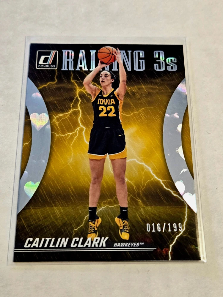2023-24 Panini Caitlin Clark Collection Raining 3s Floating Hearts 016/199 SP RC #R2