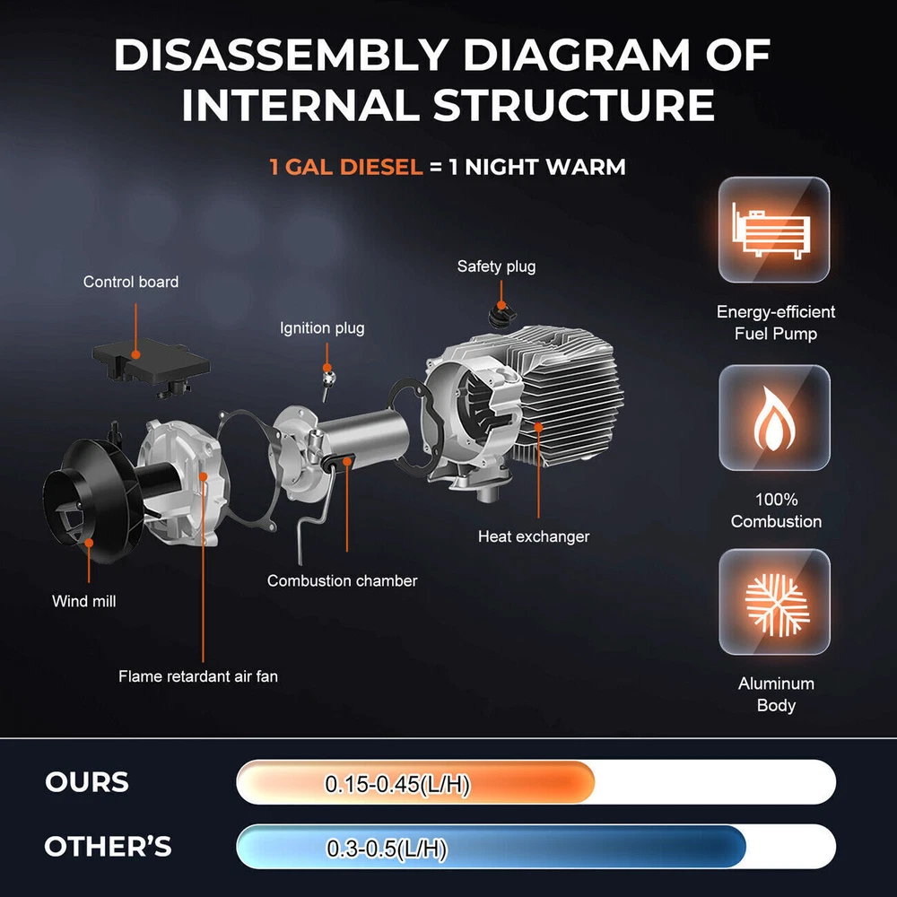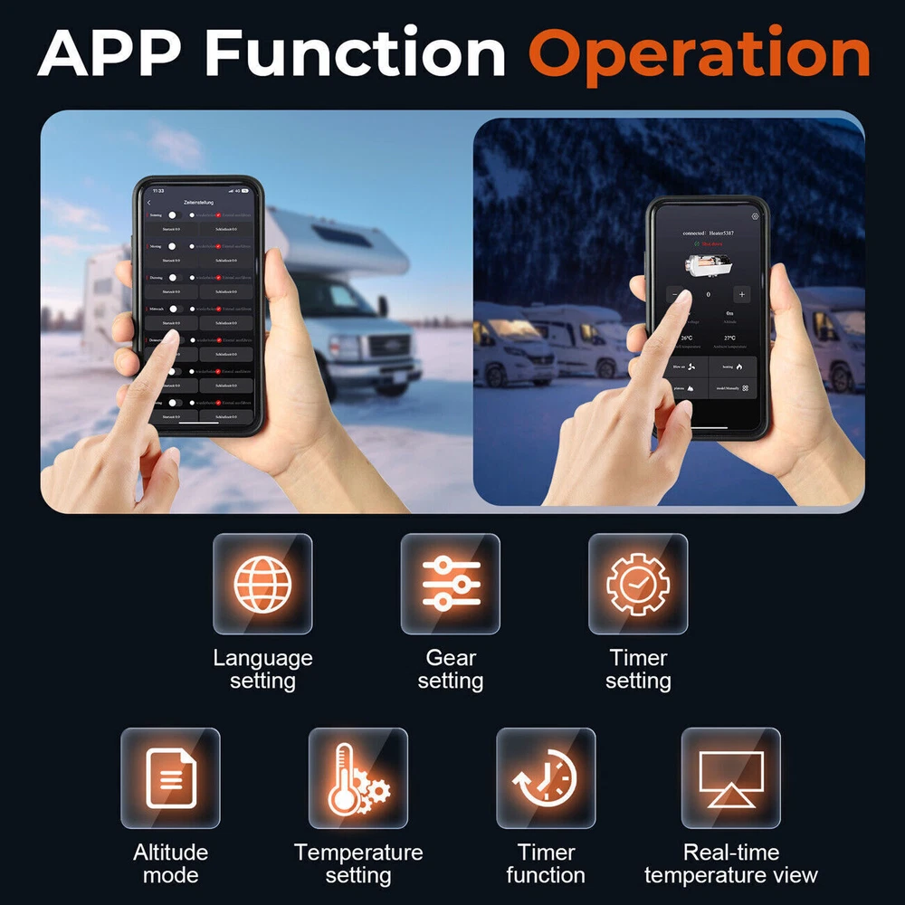 eBay May you Like 12V Diesel Air Heater 8KW bluetooth APP LCD Thermostat Boat Motorhome for Car RV 98.51USD Buy it now Free shipping 8KW Diesel Air Heater 12V 24V bluetooth App LCD Remote + 110-245v Volt Converter 115.99USD Buy it now Free shipping Diesel Air Heater 8KW 12V LCD All in One bluetooth App For Car SUV Boat RV Bus. 99.99USD Buy it now Free shipping 2024 Diesel Air Heater All-in-one 12V 8KW bluetooth App LCD for Car RV Indoors 115.99USD Buy it now Free shipping Upgraded 12V Diesel Air Heater Parking Heater Remote Control For Truck Boat RV 88.34USD Buy it now Free shipping Store Category Other Car & Truck Tire Accessories For Toyota For GM Chevrolet For Ford For Jeep For Nissan For Mitsubishi For Chrysler For Honda For Mazda For Tesla For Mercedes For Kia Car & Truck Body Exterior Part Car Mirror Glass Car Pillar Post Car Mirror Cover Car Bumper Bracket Windshield Wiper Arm & Blade Car Window Visors Car Door Handle Cover Car & Truck Interior Trim Car Accessory Car Tools Other Automotive Care & Detail Vehicle Electronics Motorcycle Parts Others NEWSLETTER Add my Store to your Favorites and receive my email newsletters about new items and special promotions! USER SERVICE ‹ › ‹ › ‹ › ‹ › ‹ › ‹ › ‹ › ‹ › ‹ › ‹ › ‹ › ‹ › ‹ › ‹ › ‹ › Features: New model 2024,With bluetooth App,remote control display is fully upgraded and more convenient to use - Calcifying liquid crystal - Heating can be applied to heat the cab of transport vehicles, vans, storage battery cars and all kinds of other vehicles. - Can remove frost from the window. - Ecological product, low emissions, low fuel consumption; exhaust emissions of heaters to meet the emission requirements of Euro IV engines. - Compact structure, easy to install. - Can disassemble to a new car when replacing the vehicle. - Technology Volatile, by ceramic ignition socket the fuel heating evaporates into gas, rapid ignition, complete combustion. - The use of advanced automatic control technology, with abnormal operating conditions reliable. - Fuel, electricity, temperature can be set arbitrarily. - May use diesel as fuel. - bluetooth app remote switch. Specifications: Brand GEARZAAR Configuration fuel tank 5L Rated power 5KW~8KW Rated voltage 12V-24V universal bluetooth function YES Fuel consumption 0.1 liters - 0.64 liters/hour Remote control effective distance 100 meters Radiator working temperature -40~+50°C Operating temperature of oil pump -40~+40°C Color White & Black(as shown) Shell Plastic+Metal Packaged included: 1 x Parking heater 1 x 12v-24V cable harness 2 x fixed washers 1 x Silencer 1 x muffler tailpipe 1 x L-shaped installation accessories for muffler 3 x installation screws for muffler 1 x Remote Control 1 x 30mm drill 1 x Wind ripple tube cover 1 x Wind Ripple Tube 2 x large metal clamp buttons 4 x small metal clamp buttons 8 x screws 2 x gloves 4 x feet 4 x foot screws 1 x power adapter Note: 1. Please allow 0.5-1cm differences due to manual measurement. 2. Due to the light and screen difference, the item's color may be slightly different from the pictures. Payment Delivery details Returns Contact us We work from Monday - Saturday 9:00AM - 6:00PM PST, but we will reply you once we get your message .There will be some delay on response if you send message or E-Mail on Sunday. 1. All items will be shipped in 24 hours after receiving your payment . 2. We ship this item to US only via USPS first class mail. It usually takes 2-5 working days to deliver. 1. We offer 30 days return policy. 2. Please contact us within 30 days from the date you receive your package if you have any questions with the products . 3. Refund will be sent after we got your returned package. 4. All returned items should be in the packaging with tracking number. We work from Monday - Saturday 9:00AM - 6:00PM PST, but we will reply you once we get your message .There will be some delay on response if you send message or E-Mail on Sunday. uesfullinks About us Contact us Add to FAVS Feedback Store home join our newsletter Add my Store to your Favorites and receive my email newsletters about new items and special promotions! Contact Do you have any questions about our offers? Feel free to contact us anytime via the eBay contact form. May you Like 12V Diesel Air Heater 8KW bluetooth APP LCD Thermostat Boat Motorhome for Car RV 98.51USD Buy it now Free shipping 8KW Diesel Air Heater 12V 24V bluetooth App LCD Remote + 110-245v Volt Converter 115.99USD Buy it now Free shipping Diesel Air Heater 8KW 12V LCD All in One bluetooth App For Car SUV Boat RV Bus. 99.99USD Buy it now Free shipping 2024 Diesel Air Heater All-in-one 12V 8KW bluetooth App LCD for Car RV Indoors 115.99USD Buy it now Free shipping Upgraded 12V Diesel Air Heater Parking Heater Remote Control For Truck Boat RV 88.34USD Buy it now Free shipping