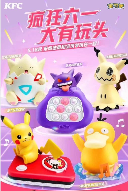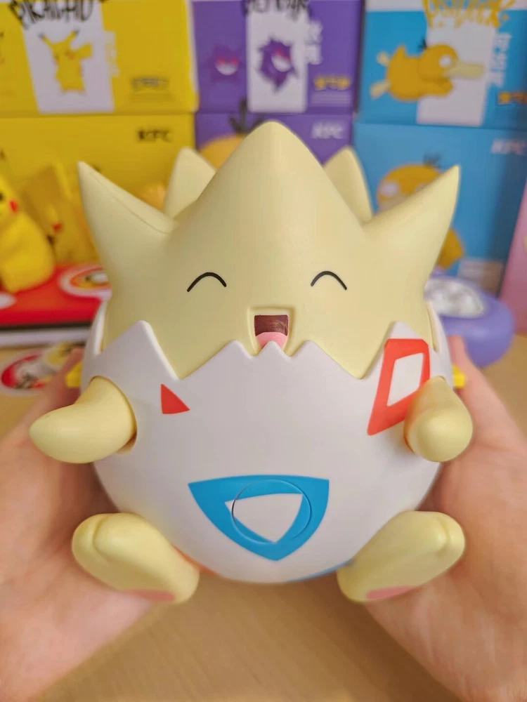 2024 KFC Children's Day Pokemon Characters Toys New In Box If you need 3 pcs or more,pleae contact me,I will give you a best price. 1, pikachu---CD player have battery,3 pcs CD can change music,press the tail,can sing. box size:20*16.5*11cm 2,psyduck---music box have battery, touch two hands,will sing,touch the hair can change music. box size:13.5*14.5*16cm 3,gengar---game machine have battery,where light,touch it. box size:13.5*16*7cm 4,mimikyu---voice control toy have bettery,can move and sound box size:15*14.5*19.5cm 5,togepi---storage box have sticker,hand can swing box size:14.5*13.5*15.5cm 6.1 Set Includes pikachu, psyduck, gengar, mimikyu, togepi (5pcs different Pokémon)