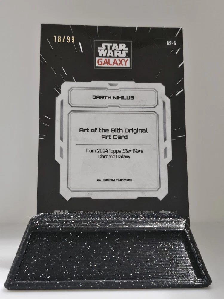 This is a rare 2024 Topps Chrome Star Wars Galaxy trading card featuring the infamous Darth Nihilus. The card is part of the Art of the Sith set and is a limited edition Wave Refractor parallel/variety. It is also serial numbered and stamped, making it a highly sought-after collector's item. The card is in excellent shape and comes from a smoke-free environment. It is a non-sport trading card and is printed in English. The card number is AS-6 and it has a print run of 79/99. This card is a must-have for any Star Wars fan and collector, and is sure to be a valuable addition to any collection.