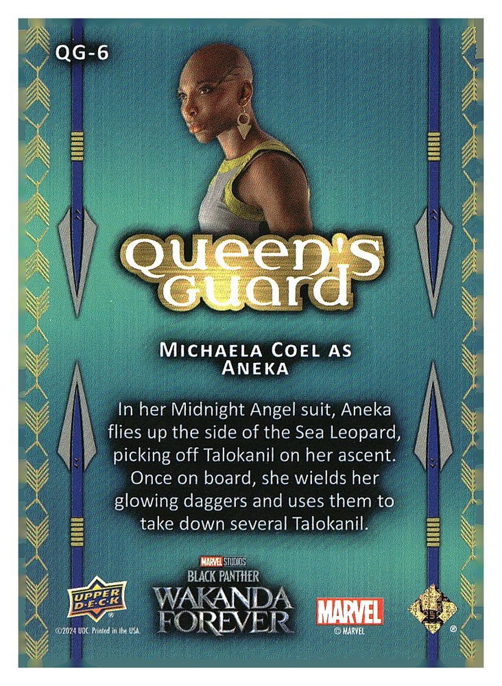 This is a nice example of a 2024 UPPER DECK BLACK PANTHER #QG-6 ANEKA BLUE 1/199 Other important information about this card: In 2024 ANEKA BLUE 1/199 played for the .. Please check out our other listings for more great cards.