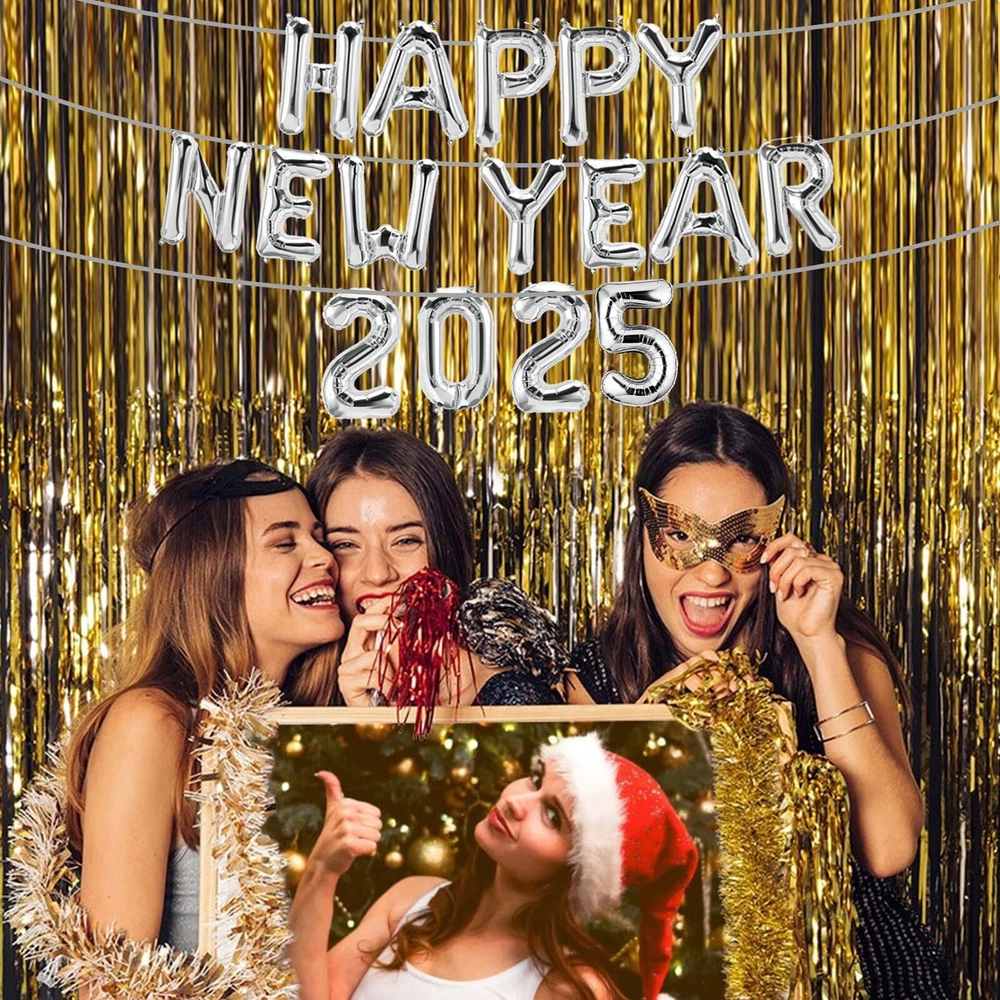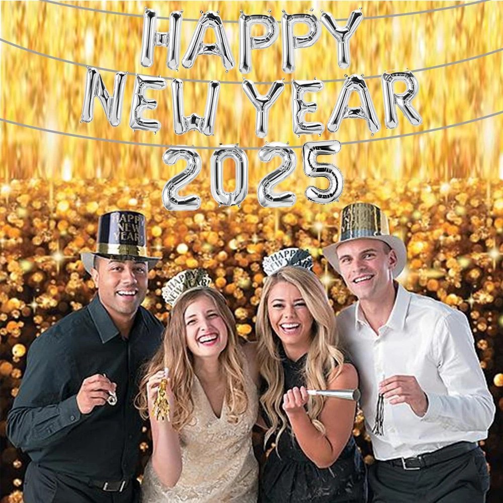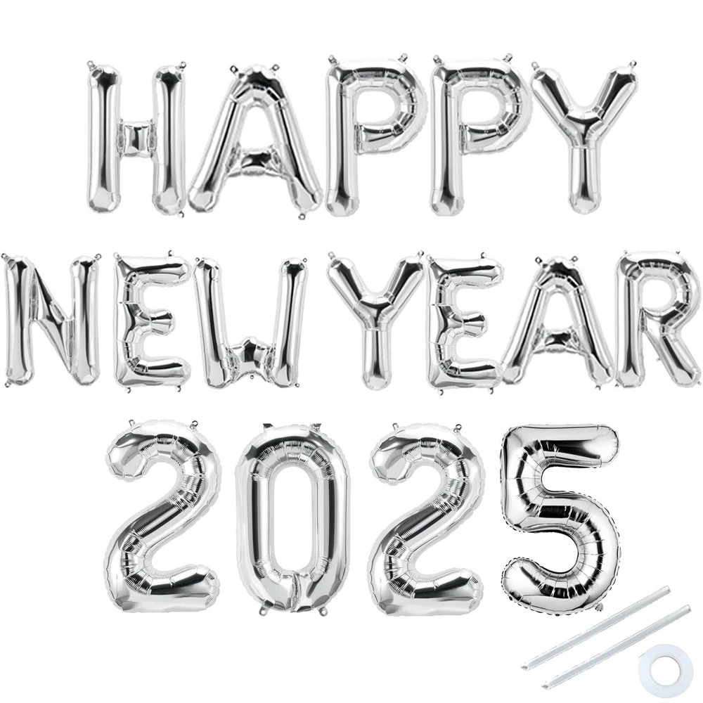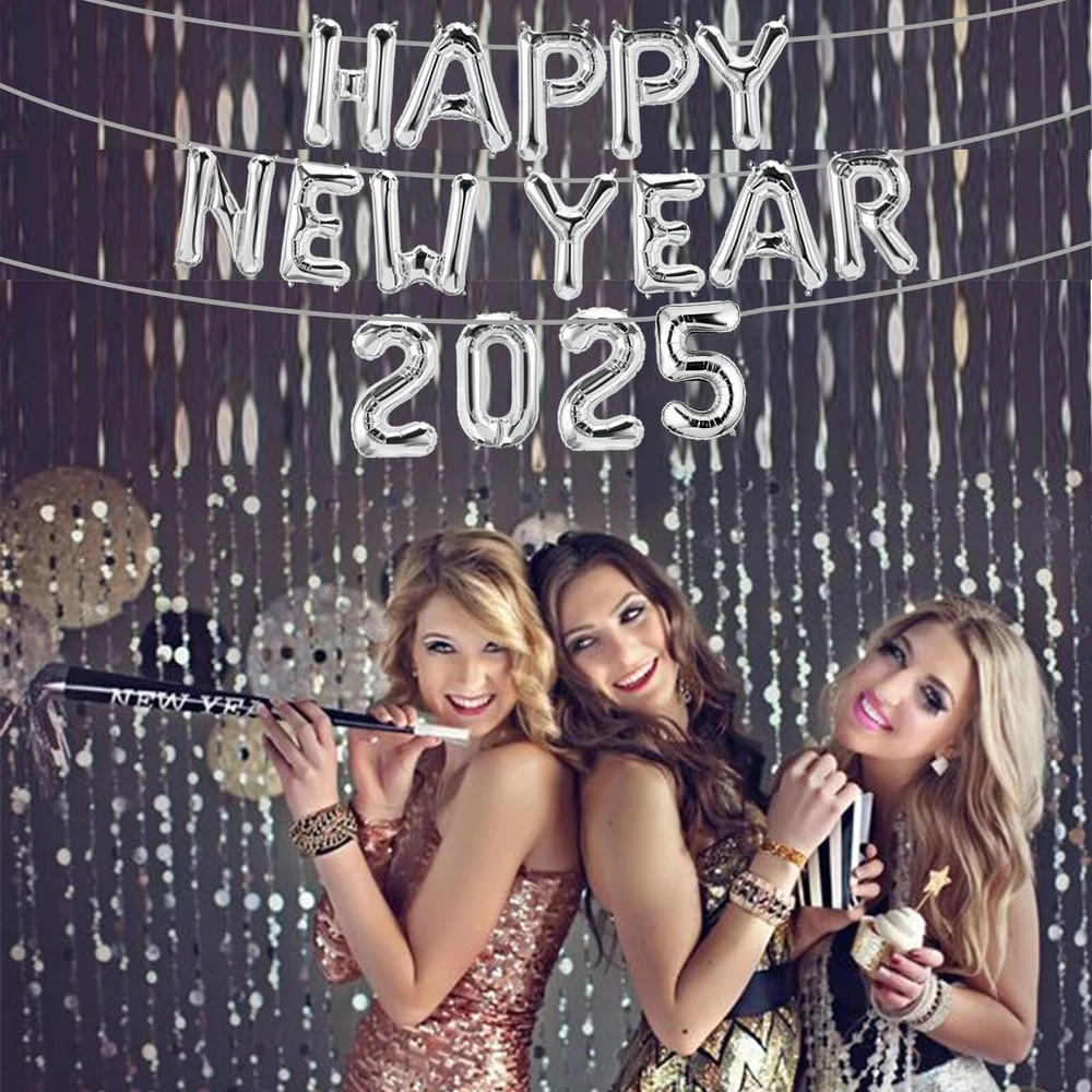 Suitable for - The New Year banners can be applied as birthday layout, indoor wedding roof decoration, stage decoration, guide decoration, Christmas party and New Year decoration and so on, making the event more eye-catching. New Years Party Decorations - Unique design,perfect for new years eve party,new years party decor,new years decorations,new years office or home decor,christmas party decorations,happy new year banner 2025 decor,farewell to 2024 and welcome to 2025 . Let Your New Year Celebrations begin with Sparkling Decorations! Begin your Special Celebration with a bang! Package Includes: Silver Number 2025 & HAPPY NEW YEAR foil balloons, 2 Inflatable Straw,10m/394 Inch Ribbon. Great Size & Reusable 32 Inch 2, 0, 2 & 5 LETTER BALLOONS can Float With Helium and Can be Reused Several Times. Suitable for - The New Year banners can be applied as birthday layout, indoor wedding roof decoration, stage decoration, guide decoration, Christmas party and New Year decoration and so on, making the event more eye-catching.