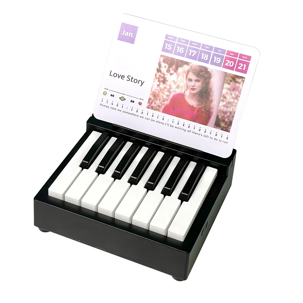 Features 1. Playable Piano Calendar: Enjoy 52 song clips and high-definition printed photos, perfect gift for fans, piano lovers and anyone who loves music. 2. Piano desk calendar, 27 double-sided, calendar card size 10.4x7.5cm (PVC waterproof, anti-folding), piano size 11x9x9cm, with USB charging cable. 3. Mini Piano: This mini piano calendar is small and portable, perfect for parties, home displays or as a fun photo prop. 4. Durable material: Made of tough ABS and smooth PVC, this calendar is durable, easy to clean and designed for long-term use. 5. Versatile: Can be used as a decoration, practice tool or to stimulate interest in music. Perfect for adding an artistic touch to your room. Specification Style: High style, short style, gift card piano 52 song sheet music Material: Plastic Color: Black, White Size: 11 x 9 x 9 cm, 11 x 9 x 9 cm, 11 x 9 x 3.9 cm, 11 x 9 x 3.9 cm, 11 x 9 x 9 cm, 11 x 9 x 9 cm, Weight: 890 g, 890 g, 220 g, 220 g, 890 g, 890 g, Package Include: 1x Piano+playable+new version (card sheet included) or 1x Short piano table calendar (2025 including cards) or 1x High end piano table calendar(2025 including cards)