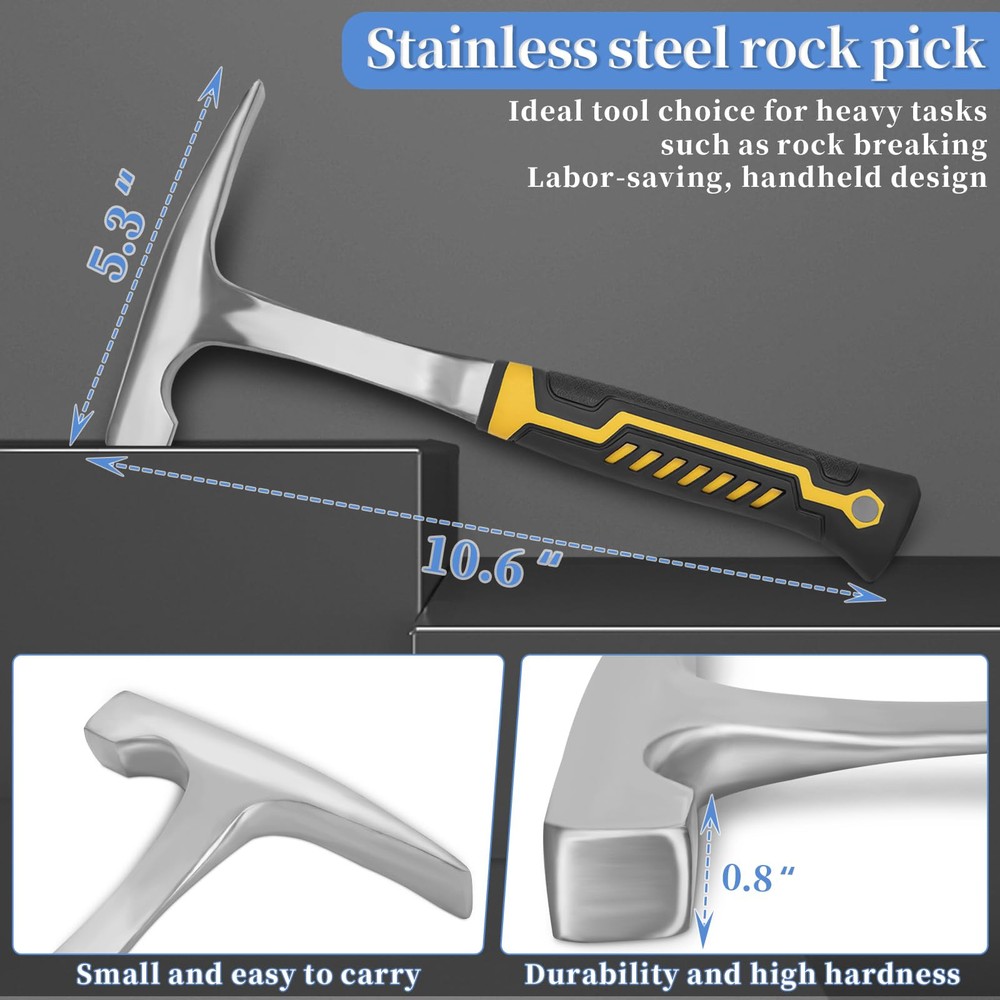 【Sturdy and Durable Storage Bag】Sturdy and durable storage bag with multiple storage pockets and snap-on design to keep your tools protected and quickly accessible. Carry all your tools and the rocks, minerals, gems, gold and fossils you find neatly and easily 【Rock Kit Tools Included】rock kit comes with a large canvas bag, rock hammer, 6-piece chisel set, anti-fog safety goggles, jewelry magnifier, small wooden brush, compass, whistle, multi-purpose shovel, 1 pair of gloves, 5-piece wooden pottery knife set 【Chisel Set】Our chisels are 5.9inches, 7.8 inches, 9.8 inches in length to meet various needs. They are made of high-strength forged steel and are good at chiseling bricks, concrete, metal and stone, allowing you to use them easily in exploring various geological formations 【Rock Tool Kit】For holidays, you can take your children to play outdoors. If you are not satisfied with our geological rock pick hammer kit tools, we are more than happy to solve it for you. Let you order with 0 risk 【Geological Tools to Inspire Interest】Provide budding rock enthusiasts with the right tools to inspire their passion for exploration. This kit is convenient and brings together all the basic tools