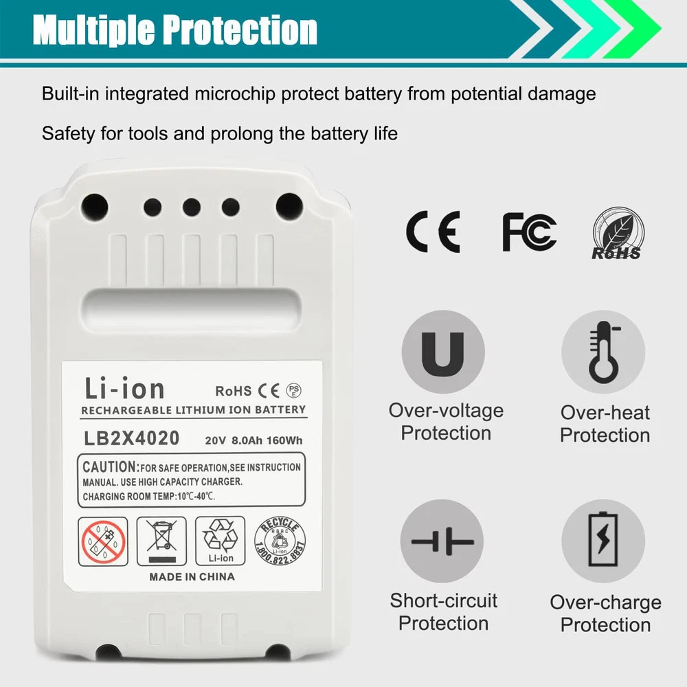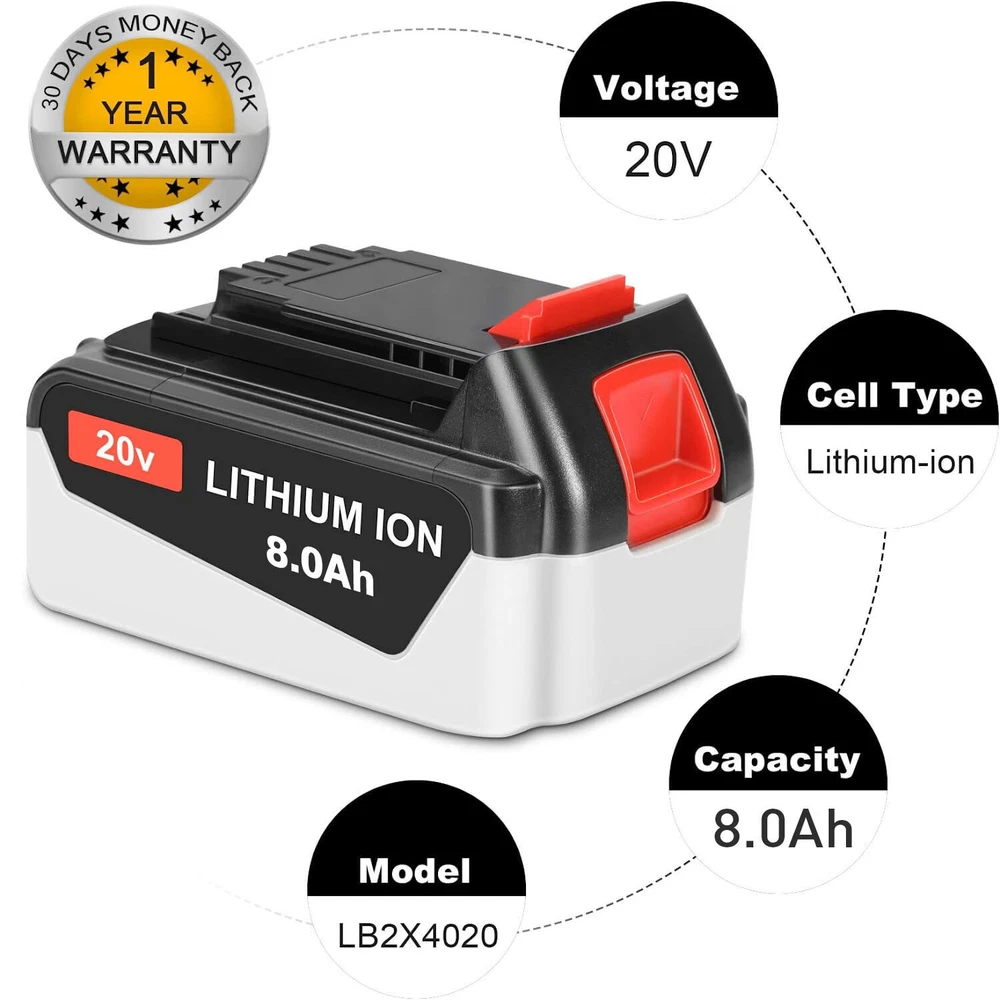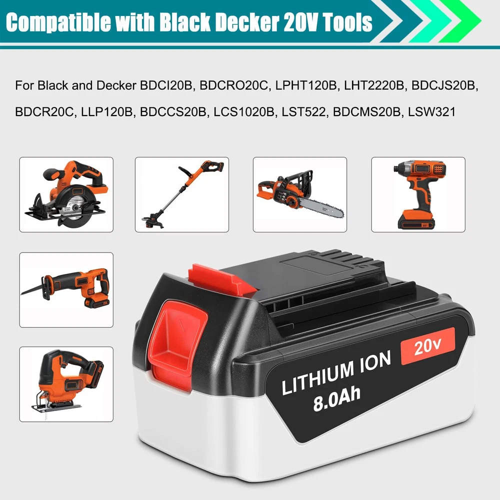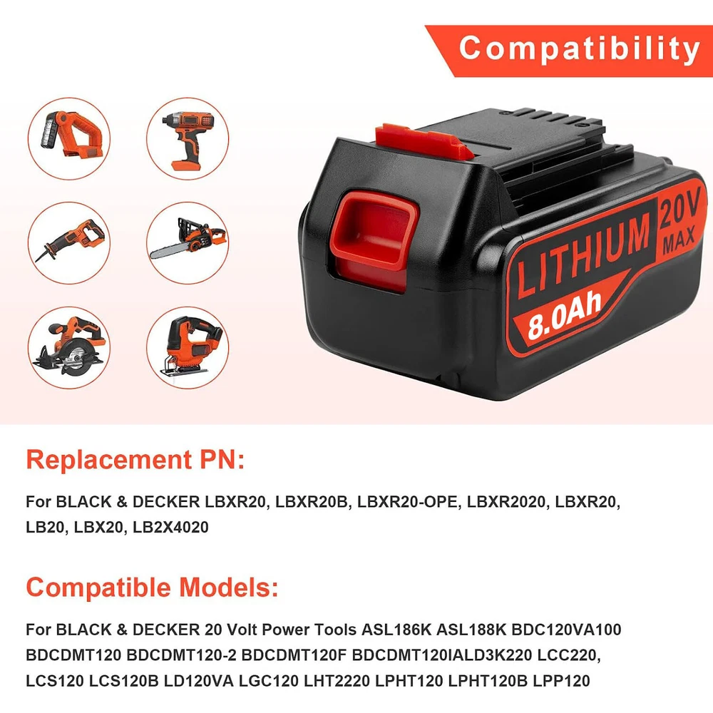 20V MAX 8.0Ah Replacement Battery for Black+Decker LBXR20 LB20 LBX20 LB2X4020