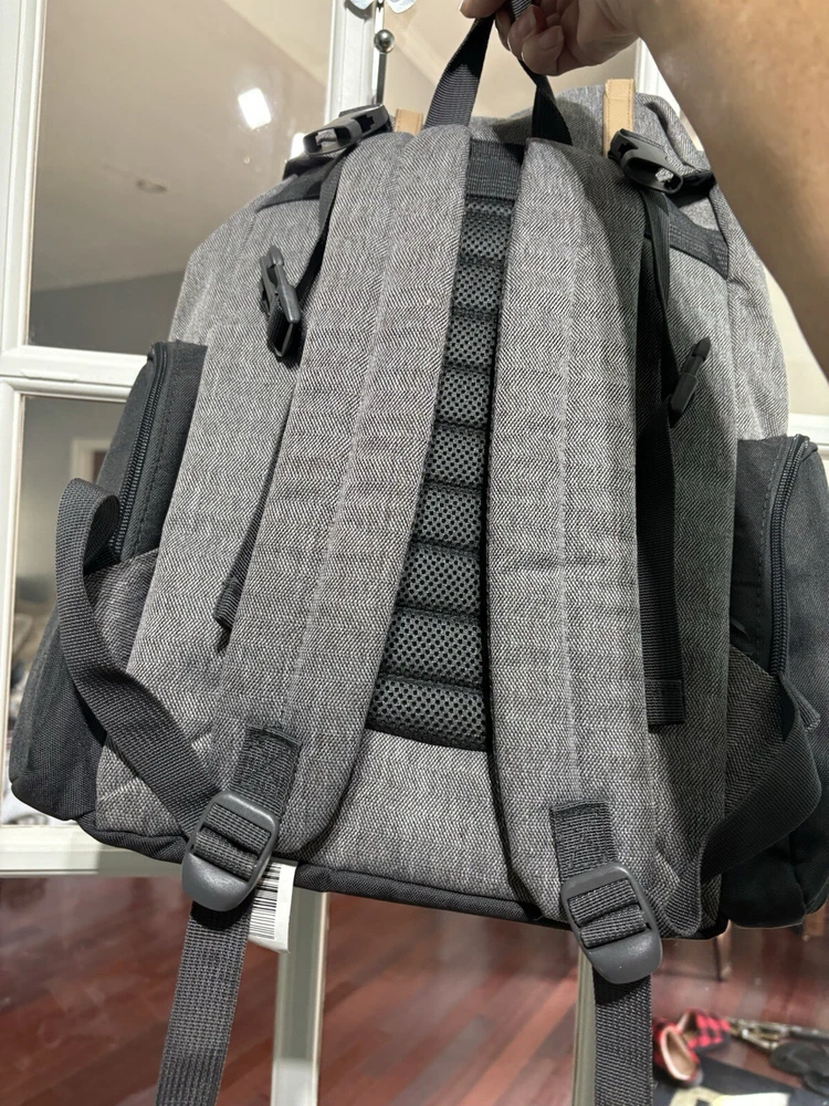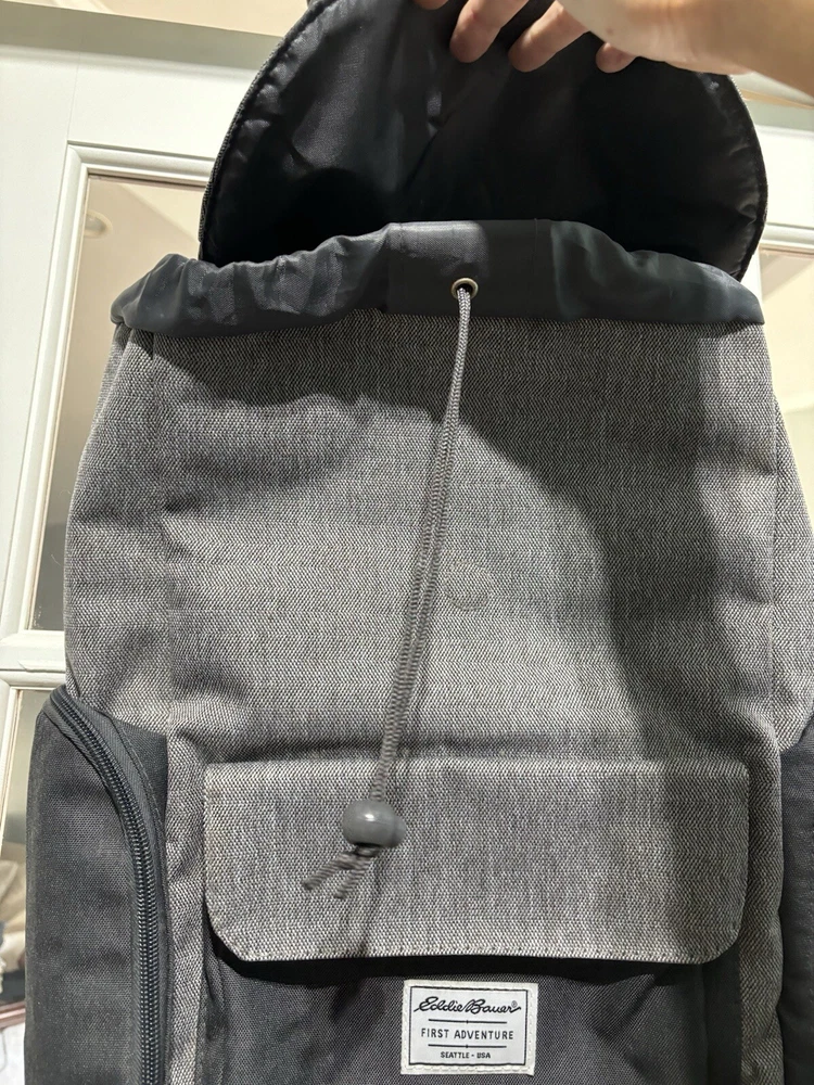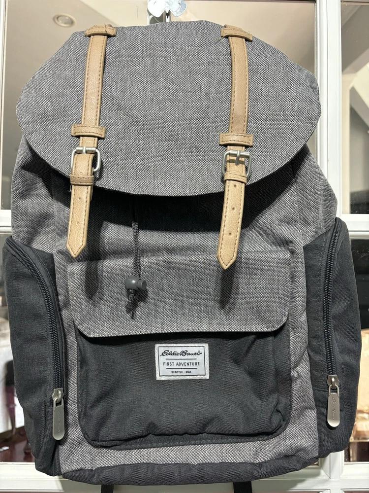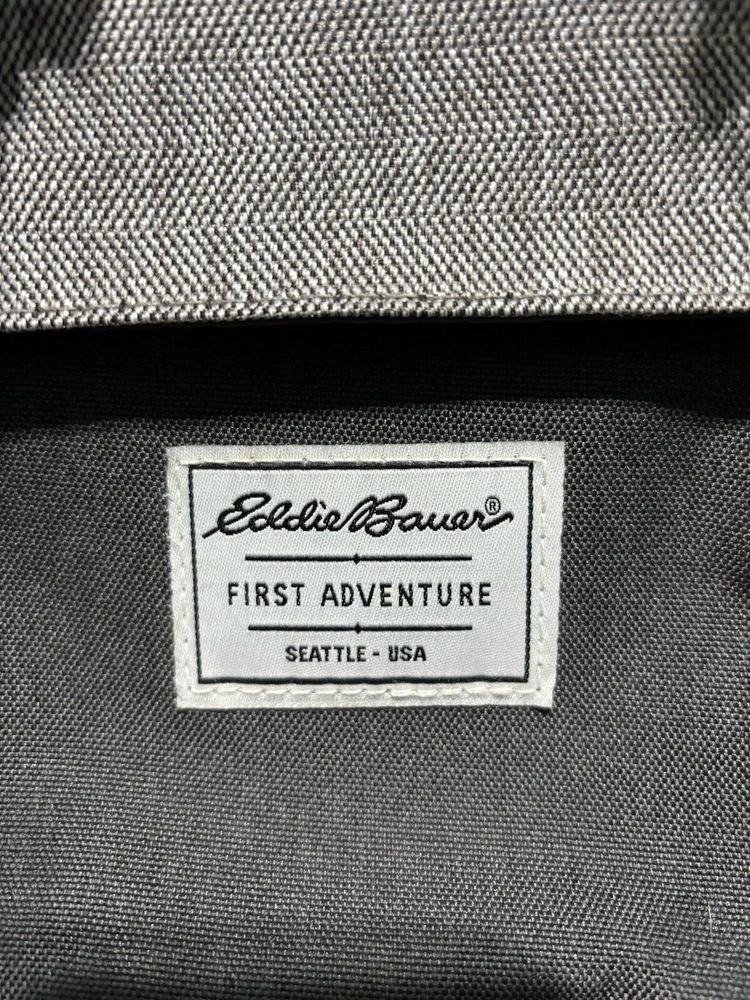 Classic Quality and construction of Eddie Bauer. Can’t go wrong, they last.., They truly outdid themselves when they made this bag, waterproof exterior all the bells and whistles! pockets sturdy zippers, Velcro, magnetic ,leather trim, deep and wide enough for laptops, etc , outdoor gear, *frequently used as diaper bag, interior pockets for organization and a divider, see pics* Any Eddie Bauer fan will love this! backpackers and hikers swear by this sytle , Looks and feels amazing on! As pictured brand new Tags removed for mannequin and photo shoot purposes only inside outlet All sales final thanks !