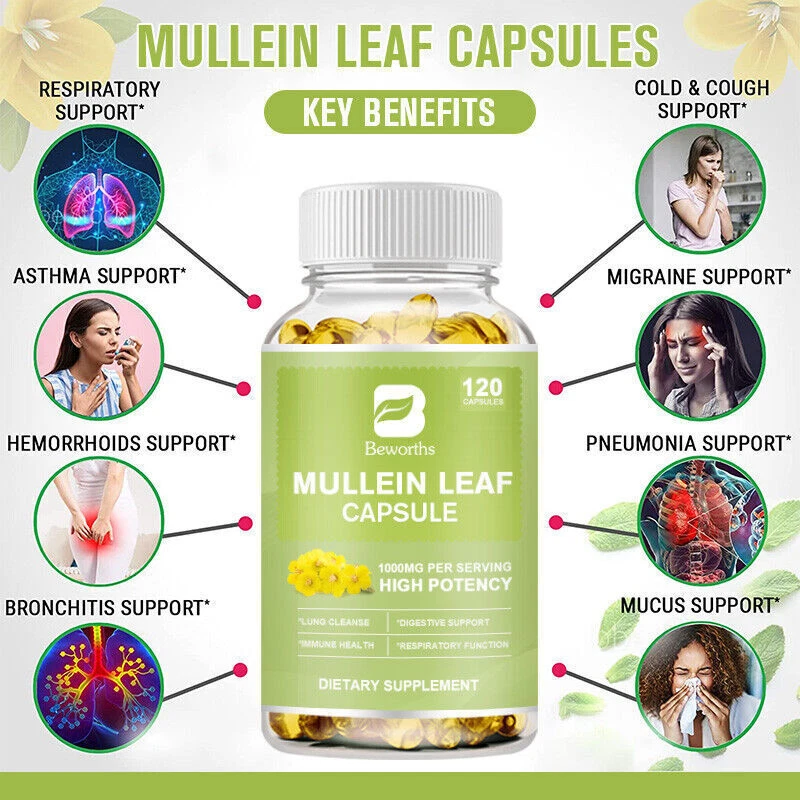 About the item: Brand: B Beworths Item Type: Mullein Leaf Capsules Quantity: 120 pcs capsules Shelf Life: 2 years Ingredients: Mullein (Verbascum Thapsus):1000mg **Daily Value (DV) Not Established Other Ingredients: Mullein Leaf, Hypromellose(capsule),Magnesium Stearate, VegetableCellulose,Microcrystalline Cellulose, VegetableMagnesium Stearate, and Silicon Dioxide. Features: MULLEIN LEAF CAPSULES — Formulated with PURE Fresh Mullein Leaves blend formula and Absolutely NO Junk! (No Filler, chemical, preservatives, dyes, etc) added. Our MULITTEA natural Mullein leaf capsules are made with carefully picked fresh mullein leaves from Hawaii and contains 1000 mg per serving. MULLEIN & KEY BENEFITS — Mullein leaves have been used for centuries to help support respiration. This versatile herb has a long history of traditional use for a wide range of respiratory disorders. Mullein is traditionally used for its ability to promote the discharge of mucus as well. So now at MULITTEA we are bringing back the nature’s best version of mullein. How to use: Take 1-2 softgels daily with water or a meal. Store in a cool, dry place. Package Included: 2*120pcs Mullein Leaf Capsules Contact Us & Feedback Your feedback is very important to us. We will leave positive feedback for you as soon as payment is received and hope you will take a moment to do the same for us. If u are satisfied with the item, please be kind to leave us positive feedback and a good rating. If you are not satisfied with the item or you have not received your parcel in the estimated time, we sincerely request from you contact us through the "My Message" section Or "Ask Seller Questions" BEFORE taking critical action. We will try our best to solve the problems to make our customers satisfied. All emails will be cos within 2 business day. If you do not receive our reply, please kindly re-sent your emails and we will reply to you ASAP. Payment The only acceptable payment methods are Payoneer, Credit Debit card & Paypal. Before your payments, please make sure you have a valid/active account. Our shipping services are valid only for verified eBay addresses. Therefore, please make sure to verify your eBay address. Moreover, your verified eBay address and the Paypal registered addresses are should be the same. Shipping We will ship the product about 2-3 days on confirmation of payment. The shipping method is Standard Registered Parcel Post. It includes 100% free shipping for most of our products. Nevertheless, this free shipping method might be changed for heavyweight items because of the huge amount of shipping cost. Returns 100% Satisfaction Guaranteed. We accept product returns within 30 business days from the delivery of the item. If you are not satisfied with the item or its condition, please feel free to contact us before taking action. We will try to solve any dispute and try our best to make our customers fully satisfied.