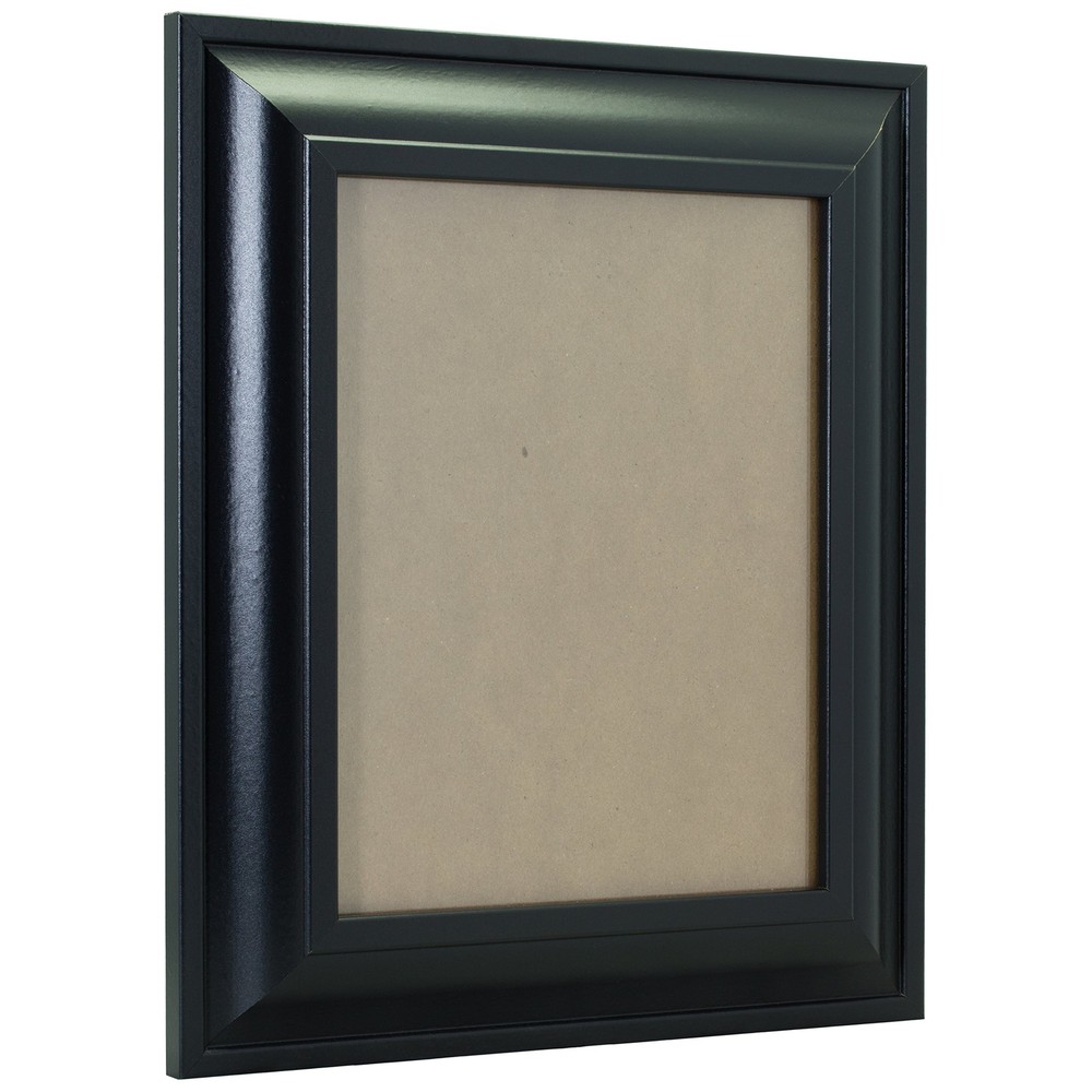 Contemporary style; black with smooth finish Frame includes: clear acrylic facing, rigid cardboard backing and wire hanging hardware kit (some assembly required) Frame holds a 19 inch by 25 inch photo/print/poster (viewable area is slightly smaller) Frame moulding is 2 inches wide; wood composite material Made in the U.S.A.