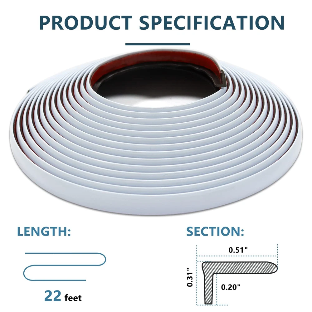 Extra Coverage: Benefit from 22ft of trim, 10% more than the standard 20ft, providing better coverage and flexibility in your home projects. Easy DIY: The wall molding trim is designed for easy installation. Self-adhesive tile trim, no extra glue needed, just peel and stick, no special tools required. Superior Adhesion: Our rubber trim molding adheres firmly to various smooth surfaces, leaving no residue upon removal. Safe & Flexible: The safe rounded corner design prevents your family from sharp edge injuries, making it ideal for various furniture applications. Enhance Your Space: Add a stylish touch to various applications including 90°external corners, stairs, fireplaces, cribs, tables, cabinets, and other furniture edges with our versatile trim.