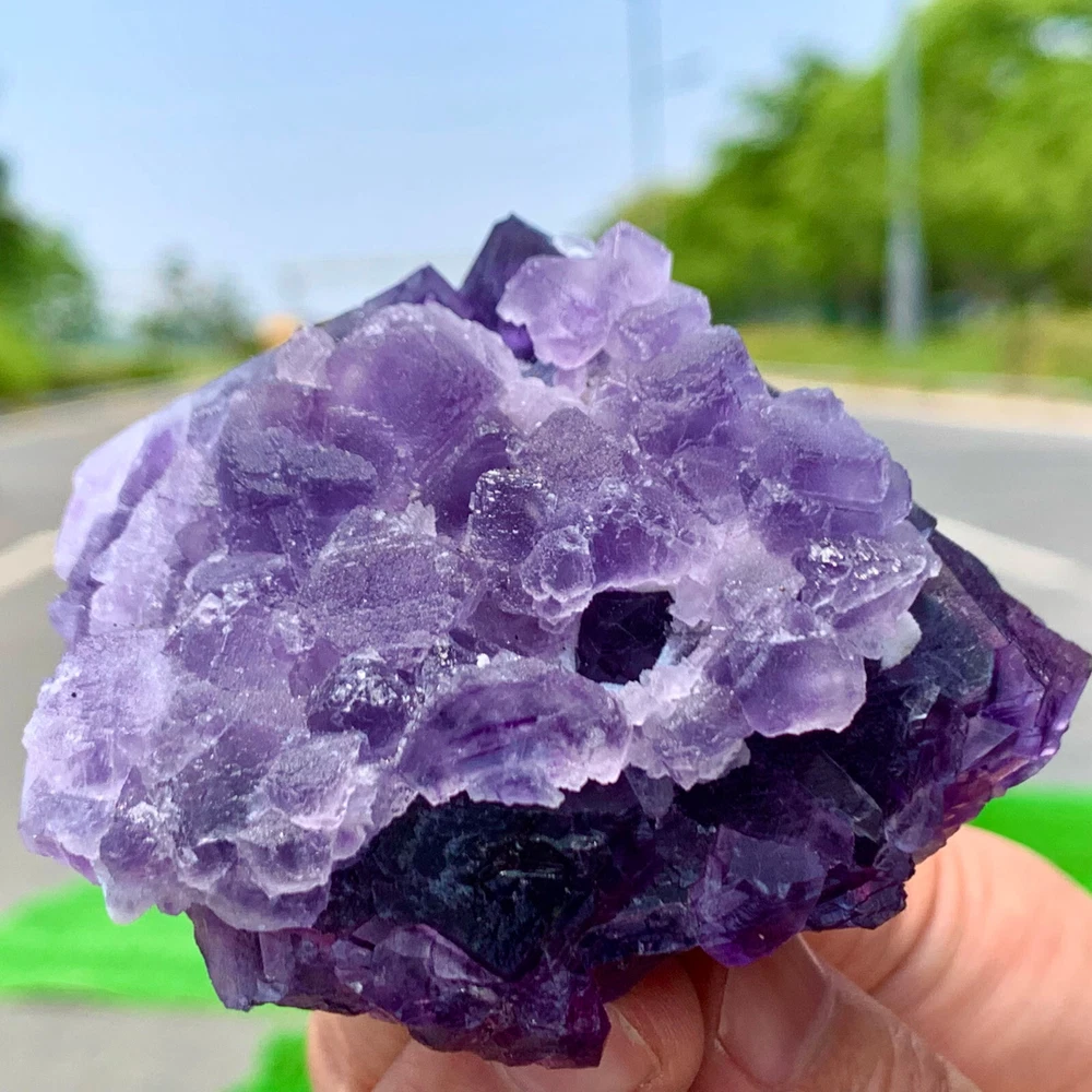 $ 61.36Natural unique purple fluorite quartz crystal specimen 97G
