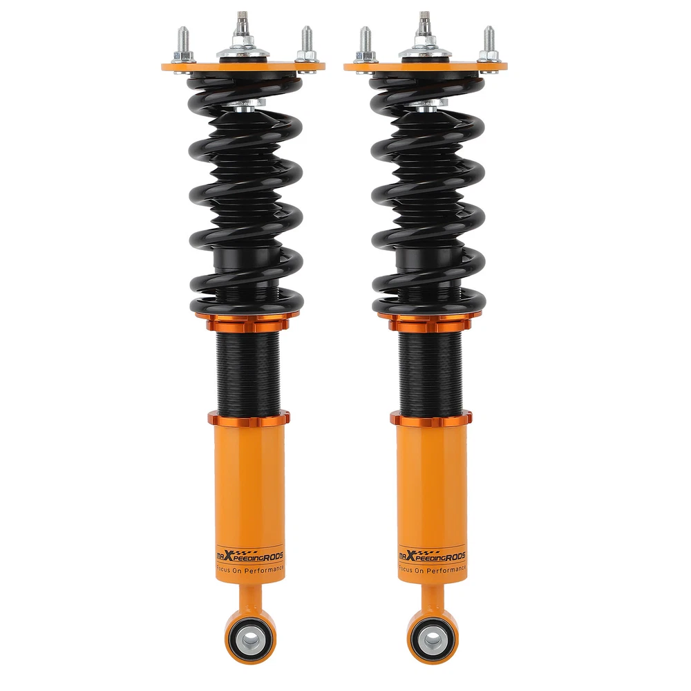 maXpeedingrods Canada Store Home About maXpeedingrods View Feedback Contact Us WHY CHOOSE US 24 Damping Levels Coilover For Lexus LS400 XF10 1990-1994 Toyota Celsior 90-94 Description Application For Lexus LS400 XF10 1990-1994 For Toyota Celsior 1990-1994 Specification Quantity: 2 piece front + 2 pieces rear Spring rate Front: 9 kg/mm (504 lbs/in) Spring rate Rear: 10 kg/mm (560 lbs/in) Damper: 24 ways adjustable damper Adjustable height: Yes Adjustable camber plate: No Color: Gold Feature - Adjustable ride height - Adjustable pre-load spring tension - 24 levels of adjustable damper -- This allows you the ability to perfectly dial in your coilovers system. For a nice comfortable driving, set damping to full soft. For more spirited driving, set it to 16 clicks. For occasional track days, set it to full stiff. - Pillow ball top mount -- this design helps combat noise while tuning. It also improves the steering feel and response - Most components are made from 6061 aluminum with T6 for increased hardness -- the advantages include excellent strength, and aluminum helps keep the weight down. - Hi Tensile performance spring - Under 600,000 times continuously test, the spring distortion is less than 0.04%. Plus, the special surface treatment is to improve the durability and performance. - Improve your handling performance without sacrifice comfortable ride. - All inserts come with fitted rubber boots to protect the damper and keep clean. - A fast and affordable way to easily upgrade your car's appearance. - Easy installation with right tools. - Ideal for any track, drift and fast road and can also be used for daily driving. Notice - Hi-performance aftermarket parts - professional installation is suggested. Other items you might also like Coilovers Coil Spring Shock Strusts For Mitsubishi Lancer (CX/CY) 2008-2016 24 Damping Level Coilover For Honda Civic 4-door Sedan FA1 FA2 FA3 FA4 FA5 06-11 24 Ways Adjustable Damper Coilovers For Lexus IS300 IS200 JCE10L GXE10 1999-2005 24 Ways Adjustable Damper Coilover For Honda Civic EJ EK EM 96-00 Acura Integra Street Coilovers Suspension For Nissan S13 Silvia 240SX 200SX 180SX 1989-1998 Coilover Lowering Kit For Mazdaspeed 3 Mazda 3 BK 2004-2009 Mazda 3 BL 2009-2013 2 Pcs Rear Active to Passive Shocks Conversion Kit for Cadillac SRX 2004 - 2009 Height Adjustable Coilover Lowering Kit For BMW 3 Series E90 E91 E92 E93 05-13 Coilovers Kit Coil Spring Struts For Mitsubishi Lancer CX/CY 2008-2016 Outlancer maXpeedingrods T6 Adjustable Damper Coilover For Jaguar XJ8 XJR X358 2007-2009 Pair Front Coilover Shock For Nissan S13 Silvia 180SX 200SX 240SX 1989-1994 Street Coilovers Suspension For Hyundai Genesis Coupe 2010-2016 2-Door ONLY About MaXpeedingrods Shipping Policy Returns Policy