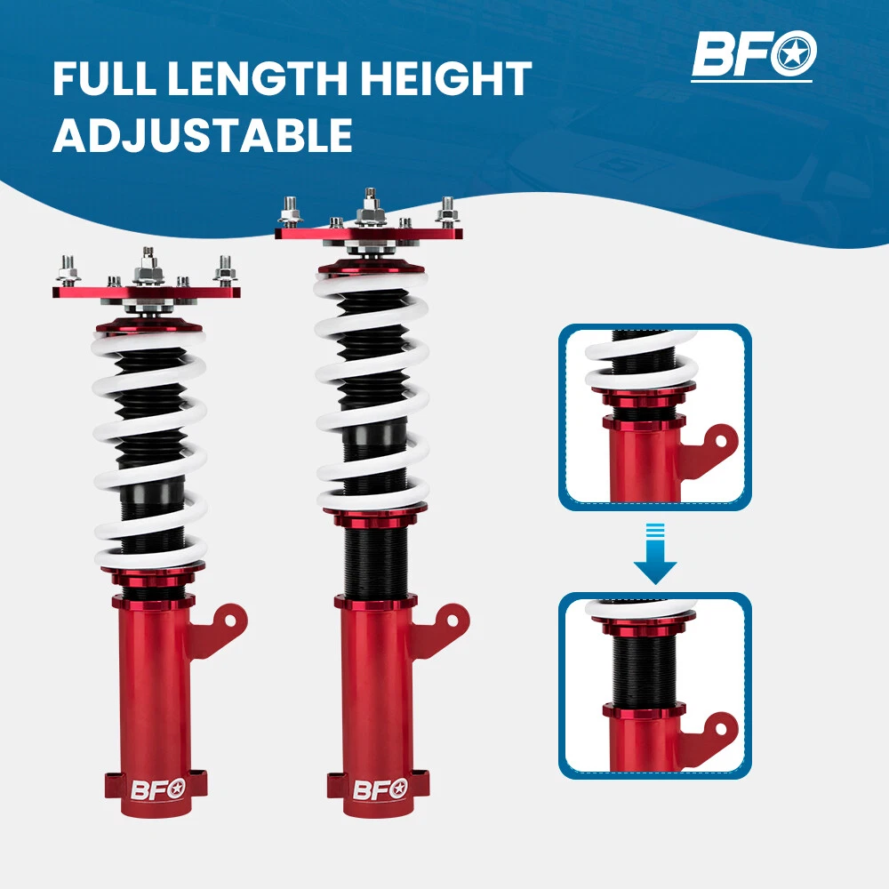 carpartsharehouse Home | Contact us | Promotion Fast hipping International Shipping 30 Days Return Policy Secure Shopping 24 Level Damper Adjustable Coilovers Shocks Kit For Mitsubishi Eclipse 2000-2005 Most Competitive Price Manufacturer We know our products Easy Return Quick, Simple Guaranteed Fitment Always the correct part DESCRIPTION Features Ride Height Adjustable - Drops From 1 to 3 Inch From Factory Ride Height Twin-Tube System for Comfortable Ride on Streets High Rigidity 55CrSi Steel Cold-bent Coil Springs Anodized Shock Body With Anti-Corrosion Coating Adjustment spanner wrenches and pictured hardware are included Full 1 Year Limited Warranty From Date of Purchase Application For Mitsubishi Eclipse (3rd-Gen) D53A/D52A 2000-2005 Specification Front top mounts: Pillow ball Rear top mounts: Rubber Damping: No adjustable damper force Front Spring Rate: 10 kg/mm (556 lbs/in) Rear Spring Rate: 7 kg/mm (392 lbs/in) Spring length Front: 200mm Spring length Rear: 200mm Coilover overall length Front: 430mm-570mm Coilover overall length Rear: 480mm-540mm Adjustable Height: Yes lowering 1" to 3" Shock Type: Twin tube Spring Preload: 7-10 mm Color: Red body with white spring Gross weight: 25kg Package size: 63*51*21cm Package included Complete coilovers 2 front and 2 rear A pair wrench for height adjustment. ★ 30-day Money Back & 12-Month Replacement Guarantee. Please feel free to contact us if there is any question. Height Adjustable Lowering Kit; Independent Ride Height And Spring Tension Settings; High Rigidity 55CrSi Steel Cold-bent Springs; Anodized Shock Body With Anti-Corrosion Coating; Full 1 Year Limited Warranty From Date Of Purchase. SHIPPING US Domestic Shipping Notice - All items will be dispatched within 24hrs(Mon-Fri) Our carrier collects all the parcels at 4:30am PDT, any payment paid after 5:00am PDT will be shipped the next day at 4:30am PDT. If you paid Item Shipped On Est.Delivery Time Before Apr. 1st at 4:30am Apr. 1st at 5:00am Apr. 5th - Apr. 7th After Apr. 1st at 4:30am Apr. 2nd at 5:00am Apr. 6th - Apr. 8th If our estimated delivery time and eBay’s are contradictory,please refer to the standard delivery time of ours. Estimated Delivery Time From To Service Est.Delivery Time US US UPS or Fedex Ground 3-5 Business days Outside of US DHL FedEx 4-7 Business days Please provide the following shipping information for your order Otherwise your shipment will be deferred. We are not responsible for any shipping lost caused by wrong shipping information International Shipment For international shipment, we do not cover any import taxes or duties. Import tax is charged by the government, not us. Our item price and shipping cost do not include any import tax which will be charged by the shipping company when you got the parcel. Please be noted that is not the extra shipping fee. WARRANTY We aim to provide you the good buying experience, 30 days return policy is offered in our store. Please follow our return policy before you return any item(s): If you are unhappy with your purchase for any reason, you can return it to us in an un-used condition in the original packaging within 30 days of purchase and we'll give you a refund or exchange. The refund/Exchange will not include postage/eBay costs. Please note you MUST contact us to obtain a Return Authorization Number before returning any part. Any parcel without the Return Authorization Number will be rejected. If your item is faulty or was incorrect, you must contact our sales representative before returning the parcel and we will endeavour to solve the problem effectively. Video or picture is required to show the item condition before we issue the Return Authorization Number. All VehicalPartsLearder products have 2 year warranty (unless otherwise stated) Important notice: 1. Any returned item(s) without Return authorization number will be rejected. 2. Please return your item(s) in original packaging and ensure that all packages are securely wrapped 3. We will not accept responsibility for loss or damage of goods during transit, please ensure that the insurance cover option is taken where possible 4. Upon receipt, all products will be inspected at our discretion in 3-5 business days. Then, the updated result will be informed. If you have made a mistake on purchase and wish to cancel the order before it is dispatched please contact us by ebay message as quickly as possible. Note: All parcel will be collected by carrier at 8:00am on Monday to Friday. F A Q Will this fit my car? We have used the eBay compatibility list as a guide for buyers to use, but the eBay data system is not accurate and incomplete sometimes. Please make sure you have read through the whole listing and paid attention to “note” and “notice”. If there is any uncertain, please use the eBay message to check with our sales first. How much does delivery cost and how long will it take? You can check the delivery cost in the listing “Shipping and payments” section by selecting your country and entering your zip code. If it is not specified, please provide us your shipping address and zip code via eBay message. For UK domestic shipping, the delivery time is around 2-3 business days. The international shipment delivery time is around 4-7 business days. What payment methods do you accept? We currently only accept payment via PayPal. You can also use PayPal as a guest and pay using a debit or credit card. When will my order be dispatched? We will arrange the shipment in 1 business day after the payment is cleared. The tracking number will be updated on eBay in 24 hours after the shipment. Please notice that there is no shipment during weekend and holidays. Can I amend my order? Sorry no. Once the payment is cleared, we cannot amend any item(s), quantities, or add or remove items. We are also unable to change the delivery address. Therefore, please double check all the order information before making payment. What do I do if I have not received my order? Ple