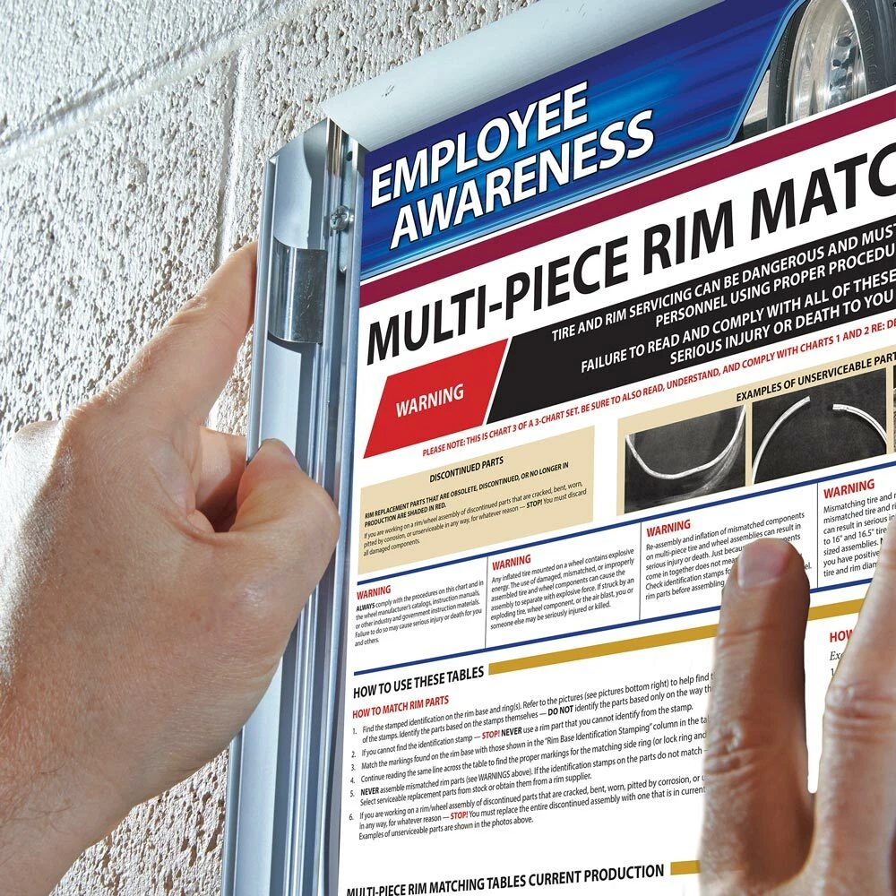Frame edges flip up for easy graphic changes Includes clear overlay and plastic backer Easy to swap out graphics when mounted on wall Usually SHIPS within 2 days of order! FlipUp front load frame to hold 24" x 36" posters and thin graphics. 1" profile, Black powder coated or Brushed Silver finish, 4 rear mounting holes, mounting screws and anchors included, plastic backer included, non glare clear overlay lens provided. Frame is waterproof, but outdoor graphics need to be laminated or treated for outdoor use. * FREE SHIPPING to the lower 48 states (does not include free shipping to Alaska or Hawaii, PO Boxes)