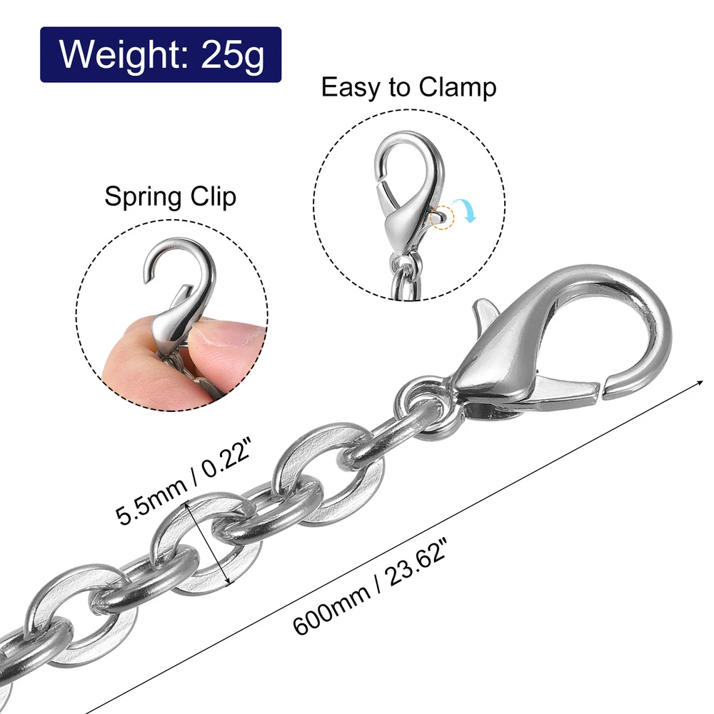 Document Descriptions:The chain strap with a suitable size for you to match with your bag. The length of the chain is 600mm (23.62 inch), the width of the chain is 5.5mm (0.22 inch), and the weight is 25g.Made of iron material that is thick and strong, with high hardness, and has perfect corrosion resistance. Surface plating is not easy to oxidize and fade.Contains two sturdy and removable metal buckles on both sides of this chain. You just easily clamp the buckles to your bags' D-ring. If you don't need this chain, you also can easily remove it from your bag.This classic chain strap can be used as a bag strap for bag accessories and decorations such as tote bags, handbags, purses, cross body bags, shoulder bags, etc. Instead of a one-size-fits-all style, you can design new bags with different looks and styles.Product Specifications:Material: IronColor: Silver ToneFinish: ElectroplatingLength: 600mm/23.62"Width: 5.5mm/0.22"Weight: 25gUsed for: Bag Replacement StrapPackage Included:1Pcs x Iron Flat Chain StrapWarm Tips:Because the connection between the chains is too thin, it may catch hair. Beware of it and buy it with caution. Also, please check that our chain length is the right size for your bag before ordering. 24"x0.22" Purse Chain Strap, Purse Handle Shoulder Replacement Strap, Silver Descriptions: The chain strap with a suitable size for you to match with your bag. The length of the chain is 600mm (23.62 inch), the width of the chain is 5.5mm (0.22 inch), and the weight is 25g. Made of iron material that is thick and strong, with high hardness, and has perfect corrosion resistance. Surface plating is not easy to oxidize and fade. Contains two sturdy and removable metal buckles on both sides of this chain. You just easily clamp the buckles to your bags' D-ring. If you don't need this chain, you also can easily remove it from your bag. This classic chain strap can be used as a bag strap for bag accessories and decorations such as tote bags, handbags, purses, cross body bags, shoulder bags, etc. Instead of a one-size-fits-all style, you can design new bags with different looks and styles. Product Specifications: Material: Iron Color: Silver Tone Finish: Electroplating Length: 600mm/23.62" Width: 5.5mm/0.22" Weight: 25g Used for: Bag Replacement Strap Package Included: 1Pcs x Iron Flat Chain Strap Warm Tips: Because the connection between the chains is too thin, it may catch hair. Beware of it and buy it with caution. Also, please check that our chain length is the right size for your bag before ordering. Hot Item Payment 1.We accept eBay payment . 2.Payment must be received within 7 business days of auction closing. Shipping 1.We ship to your eBay or Paypal address. Please make sure your eBay and Paypal address is correct before you pay. 2.Items will be shipped within 1-3 business day when we received payment. 3.Delivery time depends on destination and other factors. Description Policy 24"x0.22" Purse Chain Strap, Purse Handle Shoulder Replacement Strap, Silver Descriptions: The chain strap with a suitable size for you to match with your bag. The length of the chain is 600mm (23.62 inch), the width of the chain is 5.5mm (0.22 inch), and the weight is 25g. Made of iron material that is thick and strong, with high hardness, and has perfect corrosion resistance. Surface plating is not easy to oxidize and fade. Contains two sturdy and removable metal buckles on both sides of this chain. You just easily clamp the buckles to your bags' D-ring. If you don't need this chain, you also can easily remove it from your bag. This classic chain strap can be used as a bag strap for bag accessories and decorations such as tote bags, handbags, purses, cross body bags, shoulder bags, etc. Instead of a one-size-fits-all style, you can design new bags with different looks and styles. Product Specifications: Material: Iron Color: Silver Tone Finish: Electroplating Length: 600mm/23.62" Width: 5.5mm/0.22" Weight: 25g Used for: Bag Replacement Strap Package Included: 1Pcs x Iron Flat Chain Strap Warm Tips: Because the connection between the chains is too thin, it may catch hair. Beware of it and buy it with caution. Also, please check that our chain length is the right size for your bag before ordering. Hot Item Payment 1.We accept eBay payment . 2.Payment must be received within 7 business days of auction closing. Shipping 1.We ship to your eBay or Paypal address. Please make sure your eBay and Paypal address is correct before you pay. 2.Items will be shipped within 1-3 business day when we received payment. 3.Delivery time depends on destination and other factors.