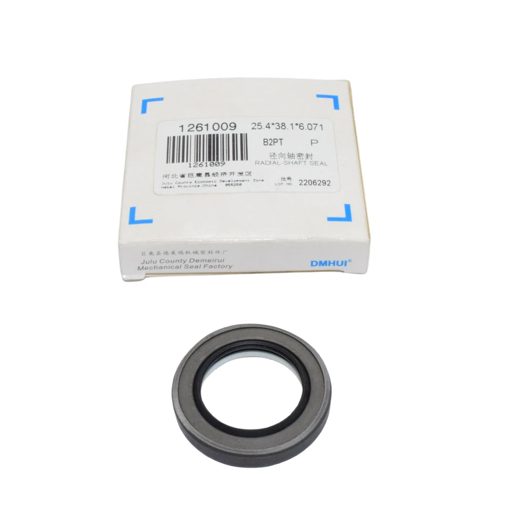 v Fit for M36121R Vibration motor v Product type: High-pressure Seal v Brand:DMHUI v Manufactuer Part Number: 1261009 v Size(mm): 25.4×38.1×6.071 v Material: PTFE+Q236 A pplications: I nclude gear pumps, plunger pumps, vane pumps, and hydraulic motors. They are used in concrete pump trucks, excavators, agricultural machinery, engineering machinery, and for the maintenance and replacement of rotating shaft seals.