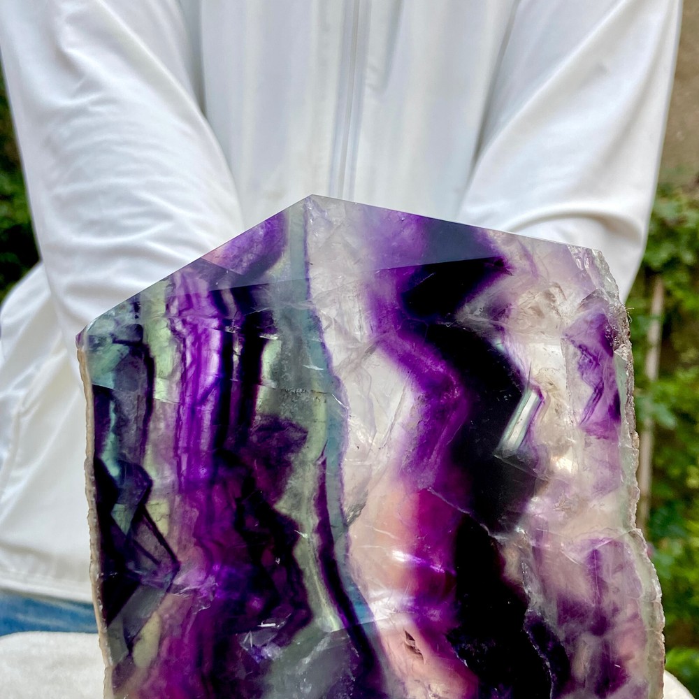 $ 15.8429.1LB Natural Rainbow Fluorite Obelisk Crystal Wand for Healing and Energy