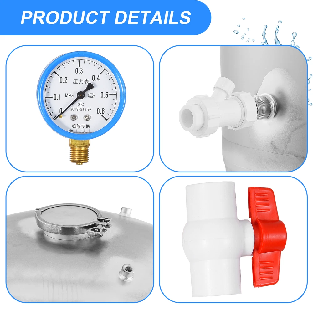 Store category Sign Up Now ! You may also like Product Description Bullet Points: Weather-Resistant Endurance: Use our stainless steel well pressure tank in any climate from -60 to 60 . Made of food-grade materials for environmental protection and zero odor, the tank is heavy-duty and won't freeze in winter. Pressure with Confidence: With the ability to withstand 6kg of pressure. It also features an automatic discharge port and top cleaning port for easy maintenance, maintaining a consistent work pressure up to 3kg. Efficient Water Supply: Elevate your water supply with our stainless steel well pressure tank, engineered to increase water pressure, boost well water, and improve flow efficiency, avoiding low-pressure water flow for an optimized experience. Easy to operate: This stainless steel well pressure tank automatically pumps water as levels drop and stops when full, ensuring a steady water supply without manual intervention, based on the efficient pneumatic supply principle. Versatile use: Ideal for pumping well water, pressurized tap water, and industrial cleaning, it also fills building water systems with pure, clean water both cold and hot. With high and low temperature resistance, automatic discharge port, and automatic stop when full, this tank ensures optimal performance and durability. Product material: stainless steel Product model: 100L Product size: 40x90cm/15.75x35.43 inches Product applicability: schools, factories, households, irrigation Product List: 100L stainless steel pressure tank * 1pcs Pressure on-off * 1pcs Pressure gauge * 1pcs Safety controller * 1pcs 2-in-1 air replenishment check controller * 1pcs Sewage outlet elbow * 1pcs Straps * 2pcs Water outlet joint * 1pcs Water outlet ball controller * 1pcs Sewage outlet ball controller * 1pcs Payment Delivery details Terms of sales About us Feedback & DSRs Payment Before you palce an order, please kindly make sure that you have a paypal account. We accept PAYPAL payment only. Payment should be completed within 2 days after auction closed, or unpaid dispute will be filed for an closing auction. An unpaid case will be filled after 4 days. Delivery details We ship to your eBay address. Each package will be shipped to US by UPS Regular Parcel with tracking number. Please check your shipping address carefully before checkout, it can't be changed if order completed. All items will be shipped within 1-2 business day upon receipt of payment.Orders placed on weekend will be shipped within 3 days. If you do not receive your item in 7-10 business days.please contact us immediately for further assistance. We will be responsible for any damages or losses incurred in the shipping process. About us We maintain high standards of excellence FIVE STAR and strive for 100% customer satisfaction! Positive Feedback is very important to us. We hope that you contact us immediately Before you give us neutral or negative feedback, so that we can satisfactorily address your concerns. We promise to offer the lowest price and high quality produce. Our working time: From Monday to Friday(9:30 am to 18:00pm), we don't working on holidays ,hope you can understand and know that , thank you. Please always talk to us via ebay Message. We appreciate your business and look forward to growing our e-Bay sales with satisfied customers. Feedback Contact us If you have any questions, please feel free to contact with us by ebay Message during our business hours ( 9:30a.m. to 5:30 p.m.), or email us through eBay, we will try our best to help you to resolve it. For any presale or after-sale questions,please do feel free to email us! Due to the time difference, each email will be replied within 1 working day,and weekend will be delayed a bit. Feedback