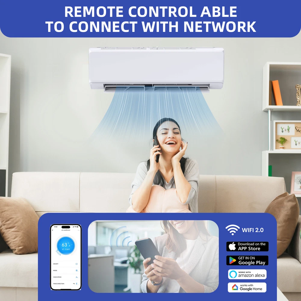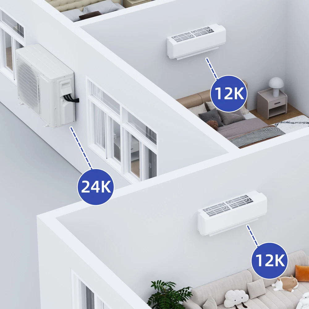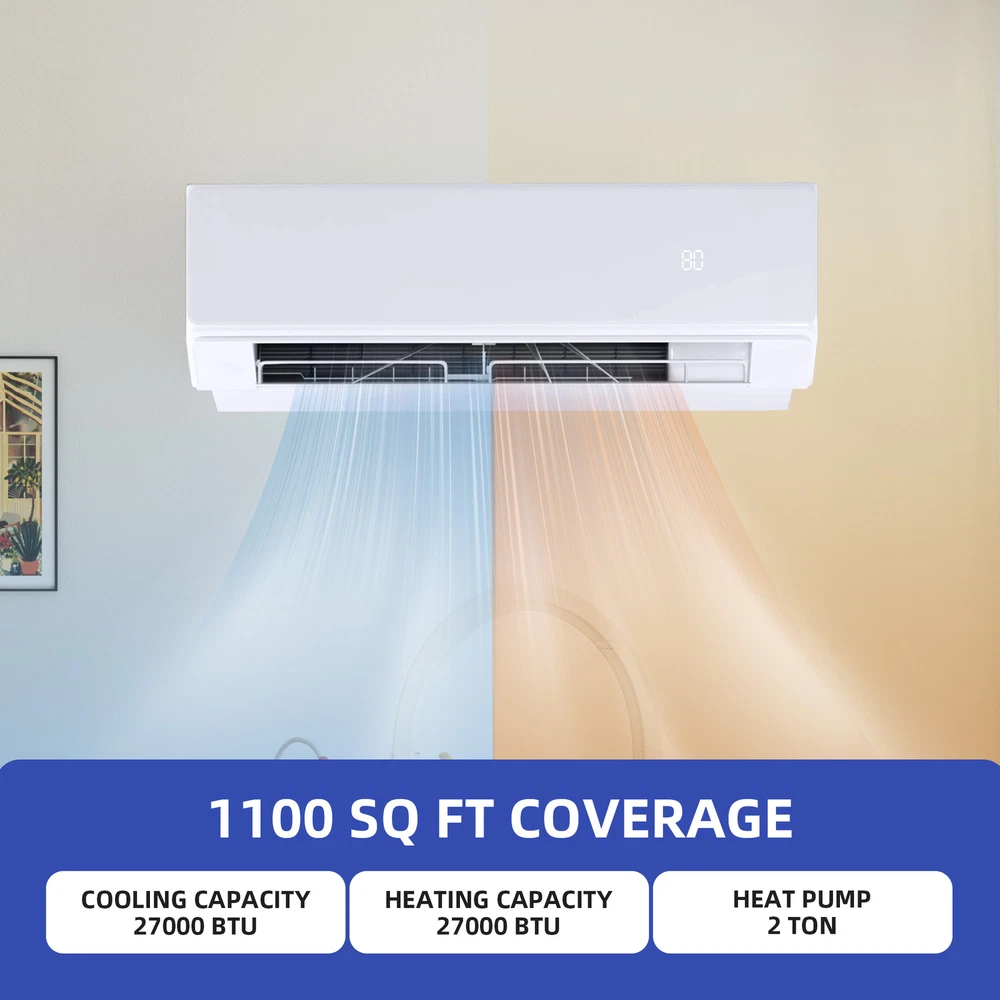 27k BTU 2 Zone 12k BTU Mini Split Air Conditioner Heat Pump System Wifi Ductless Product Description NOTE: Professional Installation would be Highly Recommended. Descriptions: 1. Material: Iron, Stainless Steel, Plastic 2. Color: White 3. Mounting: Wall-Mounted 4. Special Design: Mini Split AC, 12k (2-unit), Inverter, Wifi Control, Ductless 5. Suitable For: Bedrooms, Home Office, Living Room, Basement Features: 1. Energy-Saving Mini Split System : Maximize your comfort while minimizing energy costs with this dual zone mini split system, featuring an advanced heat pump and inverter technology for 25% energy savings. Designed to cool and heat spaces up to 1100 square feet, it’s perfect for bedrooms, RVs, garages, and commercial spaces. Certified by ETL and AHRI, this system guarantees exceptional energy efficiency and reliability for year-round use. 2. Versatile Climate Control : Enjoy customized comfort with this 27,000 BTU dual zone air conditioner and heater, offering five versatile modes: auto, cool, dry, heat, and fan. Wi-Fi and Alexa compatibility make it easy to adjust settings from anywhere. With added features like iCLEAN mode, sleep mode, and a 24-hour timer, this unit adapts effortlessly to your daily routine while optimizing energy efficiency. 3. Dual -Zone Cooling and Heating : Create a serene environment with this ductless mini split system, operating at noise levels as low as 42 decibels. With precise temperature control ranging from 60°F to 90°F, this system delivers quiet and effective climate control for multiple zones. Ideal for spaces where silence matters, it provides uninterrupted relaxation while maintaining superior performance. 4. Weather Performance with 4D Airflow : Stay comfortable in any weather with this dual head mini split system, engineered to function seamlessly in temperatures as low as 5°F and as high as 118°F. Its 4D airflow design circulates air evenly across rooms, reaching up to 50 feet for consistent heating and cooling. Perfect for extreme climates, this system ensures your space stays cozy year-round. 5. Easy Maintenance : Simplify installation and upkeep with this dual zone mini split system, shipped with an indoor unit, outdoor unit, remote control, and a comprehensive installation kit. The washable air filter is designed for hassle-free maintenance, ensuring long-lasting efficiency. Professional installation is recommended for optimal performance. Dimensions: 1. 12k Dimensions: 34.4"D x 7.6"W x 11.7"H 2. Area Coverage: 1100 SQ Ft 3. Voltage: 220V Package Includes: 1. 2 x 12k AC Unit 2. 1 x Outdoor AC Parts 3. 2 x Remote Control Shipping 1. Normally the item will be dispatched within 1 business day if payment is cleared before 12pm PST. 2. Please verify the correct shipping address in your PayPal account before making the payment. We only dispatch the item to the address that is sent to us at the time of checkout. 3. We don't ship to Hawaii, Alaska, Puerto Rico, APO/FPO/PO Boxes. 4. We don't provide local pick-up service. 5. Normally we will use USPS, UPS, FedEx & LTL to dispatch items. Payment 1. We accept PayPal and credit card. 2. We will ship to the confirmed Paypal shipping address that is provided with the payment only. Return 1. 30 days Money Back Guarantee. 2. Please contact our customer service to receive a RMA form first if want to return the item. 3. All returned items MUST in new condition with the original package. Contact If has any problem, please contact us by sending an ebay message. Our customer service will resolve the problem as soon as possible. On Dec 12, 2024 at 19:55:41 PST, seller added the following information: