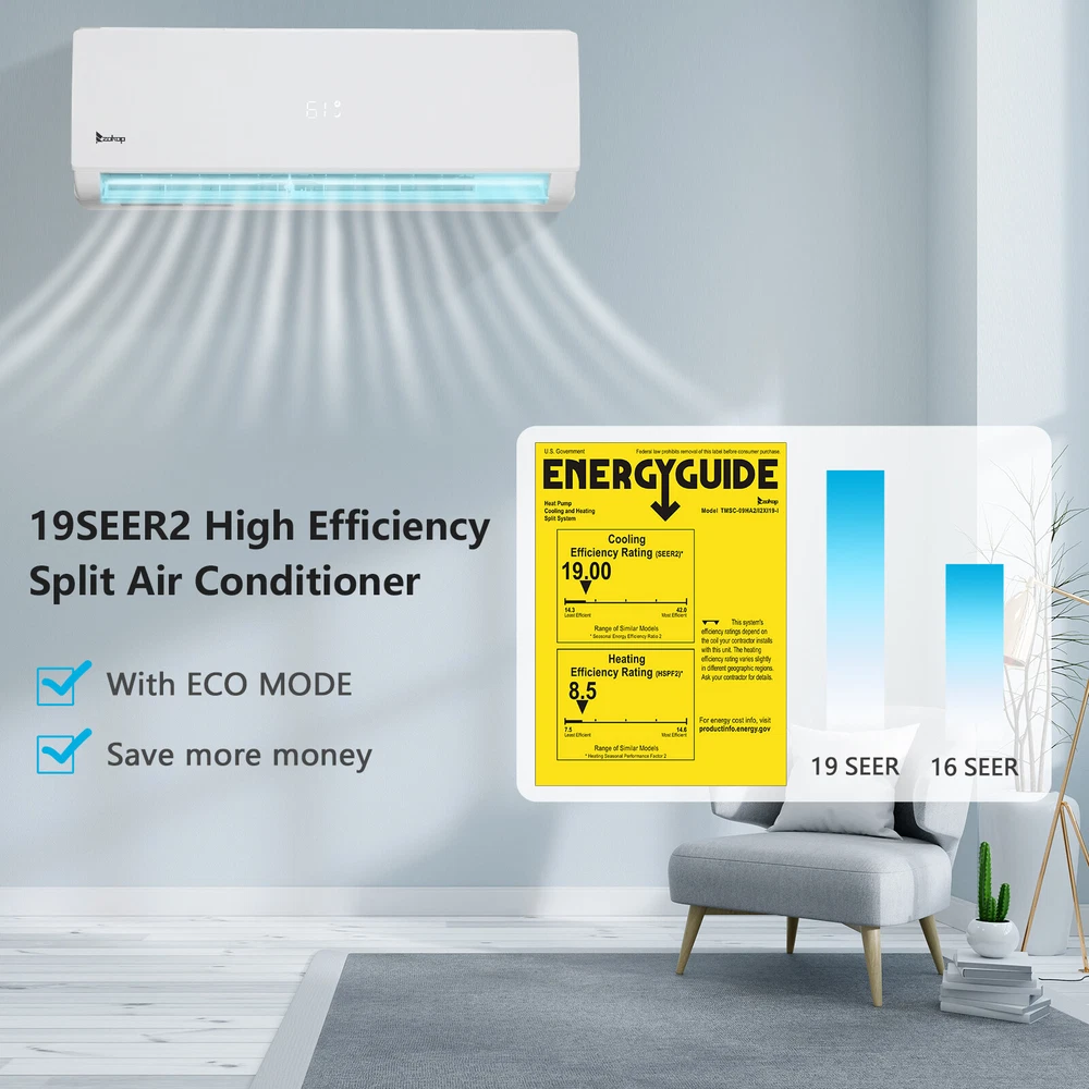 listing template Visit our store Sigh up for email 27K BTU Tri Zone 3 x 12000 BTU 19 SEER Ductless Split Air Conditioner &Heat Pump ZOKOP Tri 3 Zone Ductless Mini Split Air Conditioner Heat Pump System, 19 SEER2 Ductless AC with 3 Indoor Air Handlers, 1 Outdoor Condenser, 25ft Installation Kit (12K+12K+12K) Introductions: ZOKOP smart Split Type Type Inverter Air Conditioners with heating function are made with high quality compressor, high speed pure copper motor & inner spiral copper tube which are powerful to quickly cool down / warm your home, office, garage or apartment for maximum comfort in quiet operation, perfect appliance in hot Summer or cold Winter. Comparing with others, machine featured with high SEER grade, which means that it is more energy efficient and much money saving! This unit also has Sleep, Turbo, ECO, Mute and Timer functions. These functions help you enjoy the true individual comfort. Let the ZOKOP Mini Split Air Conditioner 3-Zone be the solution to your home's heating and cooling needs. Features: [MULTIPLE ROOMS] Comes with 3 indoor air handlers 12,000 BTU +12,000BTU+ 12,000 BTU with separate controller for individual rooms and 1 outdoor condenser. Enjoy individual temperature controls in each room for ideal climate control. This unit provides cooling and heating for up to 1650Sq. Ft (each indoor unit recommended area 550Sq. Ft) and able to work in environments as low as 5 degrees Fahrenheit. 3 pcs 24.6ft copper pipes (Standard size 1/4" & 3/8" outer dimension) and 3 installation kits included. The length for drain pipe is 78.7". Featured with Cooling, Heating, Dehumidifying and Fan only modes in one compact unit. It is ideal for using in home's bedroom, living roo, kitchen, office, apartment, garage and so on. [Energy Saving] ZOKOP the speed of the air conditioner equipped with frequency converter directly affects the service efficiency of the air conditioner. The frequency converter is a control system used to control & adjust the speed of the compressor to make it always in the best speed state, so as to improve the energy efficiency ratio (at least 30% more energy-saving than the conventional air conditioner). This 19 SEER2, 12,000 BTU +12,000BTU+ 12,000 BTU,208/230V~60Hz, AHRI Certified AC unit with a heat pump(up to 5℉/-15℃) is featured high quality compressor for more efficient cooling and longer working life; Higher SEER grade & Eco-friendly design which leads you for money saving ( please confirm voltage before making purchase) . [Quiet Cooler & Heater] Ultra Silent at only 27-42 dB(A) and beautifully built adds a touch of elegant charm to your room.In sleeping & mute mode, It's able to maintain the temperature while you are sleeping. And you can use the 24-hour timer in combination to free you from additional worries. Featured with 4-way swing function, unit provides scientific airflow in your room to suit your comforts in just a few minutes.Best choice to decorate your home. [Smart Operation] Operating this conditioner is an easy-understanding and enjoyable cooling experience (61-88degree Fahrenheit ). We can set all functions on remote control (Fan Speed Selection, Sleep Mode, 24 Hour Timer, ECO Mode, Turbo Mode, and Mute Mode). Built-in microprocessor chip & sensor in the remote controller makes it more convenient to operate the air conditioner from a distance. Digital LED display controls offer precise temperature adjustments and the remote control lets you control the air conditioner from across the room. [Washable Air Filter] This indoor AC machine comes with a permanently washable and easy cleaning air filter. Keep your air conditioner running more efficiently by cleaning the filter once a month. Specifications : 3*I ndoo r Unit : 1. Color: White 2. Power Supply: 208/230V, 60Hz 3. Cooling : Rated Capacity: 12000Btu/h Rated SEER2: 19Btu/W.h Rated EER2: 10Btu/W.h 4. Heating: Rated Capacity: 12200Btu/h HSPF2 Rating (Region IV): 8.5Btu/W.h 5. Operation temperature: (16~31)degree Celsius/(61~88)degree Fahrenheit 6. Use the air conditioner in the following temperature conditions. Indoor(cooling/heating): 17 ~32degree Celsius(63 ~90degree Fahrenheit)/0 ~27degree Celsius(32 ~80degree Fahrenheit) Outdoor(cooling/heating): 15 ~55degree Celsius(59 ~131degree Fahrenheit)/-15 ~24degree Celsius(5 ~75 degree Fahrenheit) 7. Moisture removal: 1.6L/h 8. Indoor air circulation/Hi : 650m³/h 9. Indoor noise level at cooling (Turbo/High/Med./Low/Mute): 42/39/34/29/27dB(A) 10. Application Area: Up to 550 sq.ft 11. Certificate : AHRI, ETL 12. Indoor Dimensions: 81.1x29.2x20.5cm(31.9x11.5x8.1inch) 13. Indoor Package dimensions: 88.5x36.6x27.8cm(34.8x14.4x10.9inch) 14. Indoor Net weight: 9.5kg/20.9Ibs 15. Indoor Gross weight: 12.7kg/28Ibs 1* Outdoor Unit : 1. Cooling Capacity: 27000BTU/h 2. Heating Capacity: 27000BTU/h 3. SEER2: 19.0BTU/h.W 4. Rated Voltage: 208/230V~60Hz 5. Refrigerant type: R410A/2200g/77.6 ozs 6. Outdoor Dimensions: 90x36x80.5cm(35.43x14.17x31.69inch) 7. Outdoor Package dimensions: 102.8×47.5×86.5cm(40.47x18.7x34.06inch) 8. Outdoor Net weight: 56kg/123.5lbs 9. Outdoor Gross weight: 60.5kg/133.4lbs 3*Copper pipes : 1. Connecting Pipe:Gas 3/8''-24.6FT/7.5M Liquid 1/4''-24.6FT/7.5M 2. Signal Cable Length: 24.6FT/7.5M 3. Drain Hose:6.6FT/2M Package Includes : 3* Indoor box includes : 1 x Indoor Unit 1 x Remote Control 1 x Screw Pack 1* Outdoor box includes: 1 x Outdoor Unit 4 x outdoor feet rubber 3*Copper pipes box includes: 1 x Copper pipes set(24.6FT) 1 x Signal Cable(24.6FT/7.5M) 1 x Drain pipe(6.6FT) 1 x Drain pipe adapter 2 x Sealant 2 x Wall sleeve cover 2 x Pipe tape 1 x Insulation pipe 1 x Wall sleeve You might like this more>> 6-Tier Bamboo Bookshelf Adjustable Storage Shelf Rack $49.99 Professional Cello 4/4 Full Size BassWood Set with Bag $148.99 Stainless Steel 4 Tier Steamer Cooker Steam Pot Kitchen Food $39.29 110 LB x 0.1oz All-In-One Digital Postal Shipping Scale 50kg $22.79 2Pack 10000LM LED Zoomable Flashlight Torch Lamp Light $