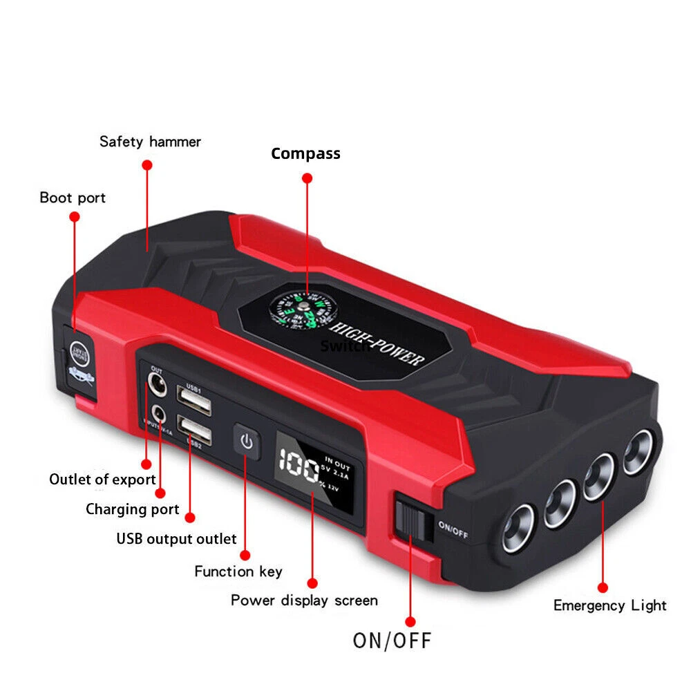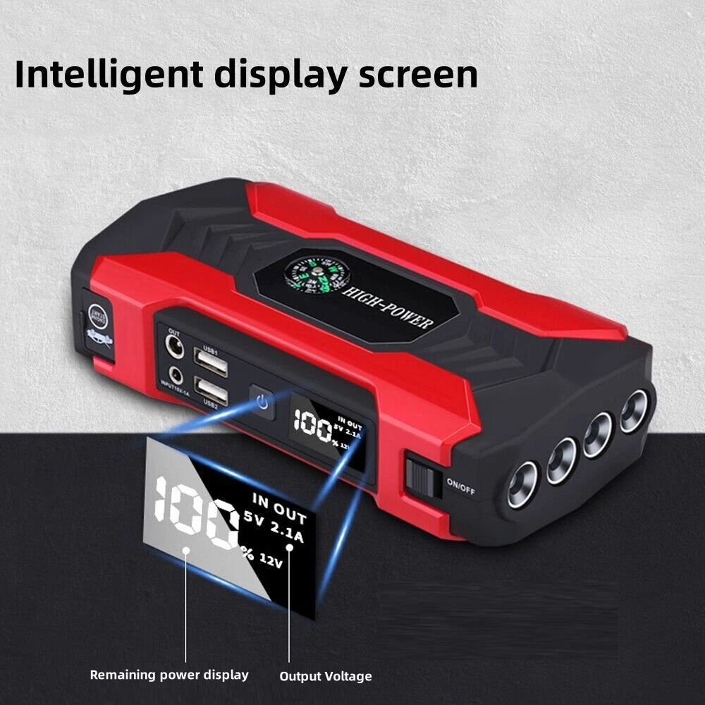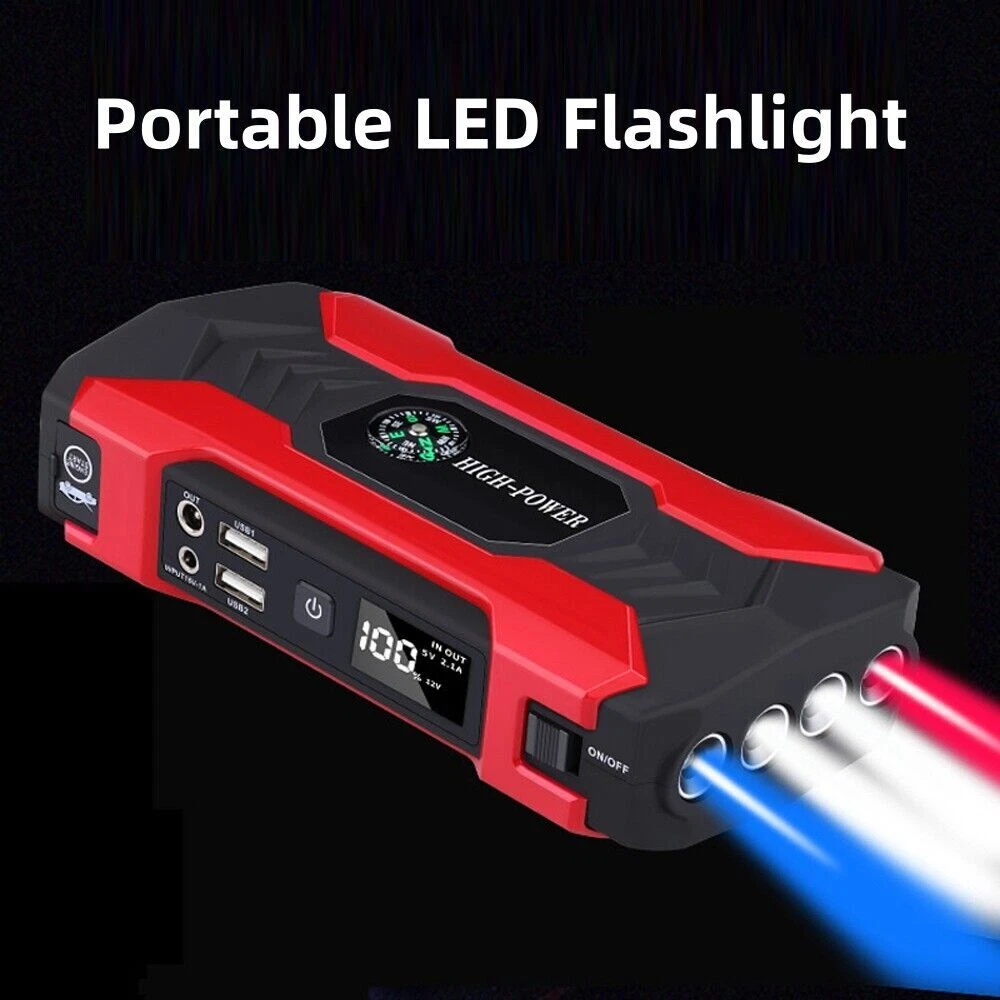 Features: -It can jump start most vehicles (up to 6.0L gas or 3.0L diesel engine) with heavy durable clamps and cables, suitable for your 12V vehicles. -Not only as a car battery jump starter, but also can used as a power bank. Designed with 4*USB output (5V/2.1A), which can be used as a power bank and you can charge smartphones,tablets and so on. -Small enough to store in your glove box and light enough to pack in your bag. -Comes with an LED light,has 3 modes: normal light,strobe light and SOS light. Welcome to our store Car Jump Starter, 28000mAh Portable Charger Power Bank with LED Flash Light Features: -It can jump start most vehicles (up to 6.0L gas or 3.0L diesel engine) with heavy durable clamps and cables, suitable for your 12V vehicles. -Not only as a car battery jump starter, but also can used as a power bank. Designed with 4*USB output (5V/2.1A), which can be used as a power bank and you can charge smartphones,tablets and so on. -Small enough to store in your glove box and light enough to pack in your bag. -Comes with an LED light,has 3 modes: normal light,strobe light and SOS light. -With overcharge, voltage stabilization, over-discharge, short circuit, constant current, anti-reverse connection, temperature and magnetic field protection. Note: -If the car doesn't turn on after the first attempt, please wait more than 10s to try again. You may need to check if other reasons cause the car to fail to start if the car won't start after 3 times attempt. -Remove the jump starter in 30s after the engine starts. Do not allow positive and negative clamps to come into contact with each other. Make sure that the positive and negative clamps are connected to appropriate terminals. Specifications: Battery Capacity: 99800mAh Car Port Interface: 12V USB Interface: 5V Notebook Interface: 19V/16V/12V Input Voltage/ Current: 15V/1A Starting Current: 400A Peak Current: 1200A (< 3s) Working Temperature: -40 to 80 ℃ Charging Time: About 4 hours with a full charge Lifespan: Over 10,000 times Size: 17 x 8.8 x 3.8cm Package Included: 1 x Car Emergency Power 2 x Clips 1 x AU Charger 1 x Car Charger 1 x 3 in 1 USB Charging Cable 1 x Container Box 1 x User Manual Item Specifics Brand Unbranded Battery Capacity 28000mAh Car Port Interface 12V USB Interface 5V Notebook Interface 16V/19V Input Voltage/ Current 15V/1A Starting Current 400A Peak Current 1200A (< 3s) Working Temperature -40 to 80 ℃ Charging Time About 4 hours with a full charge Lifespan 3000 times Size 17 x 8.8 x 3.8cm Type Jump Starter Features Portable,LED Light Accessories Charging Cable,Carrying Case,Battery clip Car battery starter Jump Starter & Charger Voltage 12V Manufacturer Warranty 5 Years Payment We accept all forms of payment . Payment is expected within 2 days from the end of the auction. We send all the items are based on your paypal address. Therefore, please make sure your paypal address is valid. Shipping Handling time: 1 business day (Orders are not processed on weekends & holidays) Tracking information will be sent once item is shipped. Local pick-up is unavailable at the moment. For international shipping and shipping to Guam, Hawaii and Alaska, Please contact us before placing the order. Item is shipped to ebay address. Leaving correct address can minimize delay. Returns If you are satisfied with the purchase and our total service, your comment is very important in our business success. Please take a minute to leave us a positive feedback with an overall Detailed Selling Rating (DSR) of 5. Our eBay account setup auto feedback, so eBay system gives you automatically Positive feedback back after your positive feedback left. If you plan to give us a neutral/negative feedback Or open ebay/paypal case, please write to us immediately so that we can do our best to resolve your problem. Contact Us All messages will be answered within 24 office hours. Please contact us either by clicking "contact seller" in the "purchase history" section or simply click "ask a question" at the bottom of this page. If you are unsatisfied with our item or service, please contact us before leaving any feedback. We are committed to resolve all issues in a friendly and satisfactory manner. We always reply to messages within 2 business days (off-duty at weekend). If you do not get a response from us, then please check your junk or spam mailbox. Location Los Angeles,United States Please always talk to us via ebay Message. We appreciate your business and look forward to growing our e-Bay sales with satisfied customers. Welcome to our store DESCRIPTION PAYMENT SHIPPING RETURN POLICY CONTACT US Hot Item Picture New List Item Car Tire Inflator Cordless Digital USB Rechargeable Tire Air Compressor Pump 12V USD 0.01 Black Waterproof Backpack Rucksack Bag Plain Sport Hiking School Work Travel Bag USD 18.89 Half Face Gas Mask Reusable Respirator Mask With Filters Chemical Paint Mask USD 12.89 Rechargeable Table Desk Lamp LED Touch Dimmable Cordless Bedroom Night Light USD 17.89 Cordless USB Rechargeable Table LED Lamp-Touch Control Light,Portable Dimmable USD 16.89 Help & Info Payment Policy Shipping Policy Return Policy FAQ About Us Car Jump Starter, 28000mAh Portable Charger Power Bank with LED Flash Light Features: -It can jump start most vehicles (up to 6.0L gas or 3.0L diesel engine) with heavy durable clamps and cables, suitable for your 12V vehicles. -Not only as a car battery jump starter, but also can used as a power bank. Designed with 4*USB output (5V/2.1A), which can be used as a power bank and you can charge smartphones,tablets and so on. -Small enough to store in your glove box and light enough to pack in your bag. -Comes with an LED light,has 3 modes: normal light,strobe light and SOS light. -With overcharge, voltage stabilization, over-discharge, short circuit, constant current, anti-reverse connection, temperature and magnetic field protection. Note: -If the car doesn't turn on after the first attempt, please wait more than 10s to try aga