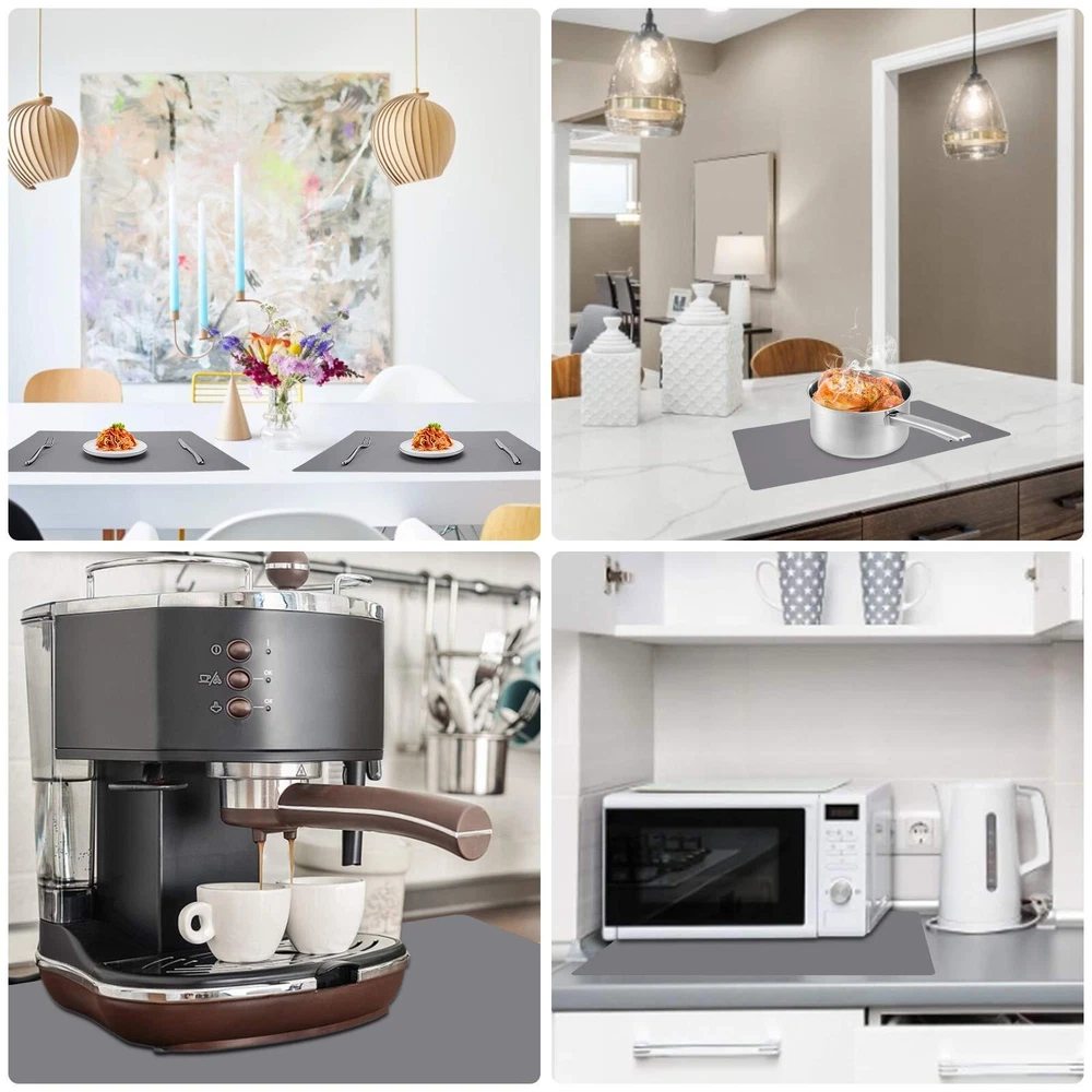 28x20 Inch Extra Large Silicone Mat Non Skid Heat Resistant Pad for Countertop Features: Size :Sized at 28" x 20"x 0.03"(Length x Width x Thickness), large enough to protect your counter top, it can be placed under the microwave, air fryer, induction stove, toaster oven, coffee maker etc. Non-slip Bottom : The kitchen protector pad can stick tight to the countertop or other surfaces, used the smooth side down, it does not slip and slide on the countertop. Durable & Reusable : Countertop pad is made of 100 percent food grade silicone, heat resistant between -40℉ and 446℉.Non-slip, non-stick, not easy to deform or tear up, durable reusable. Countertop Protector : The multipurpose silicone mat can be used as placemats, pot holder, dish mats, tableware, trivet, drains, heat insulated pads to protect the kitchen countertops and other surfaces against spills, scratches, grease, heat, etc. Easy to Clean & Store : Non-skid table mat is washable, easy to clean with water and dishcloth.It can be stored rolled up or folded, occupying minimal space in a drawer or cupboard. 🌻 If you need more quantity than shown available - just send me a message and I'll increase the purchased limit for you 🌻 SHIPPING We are always working hard to ensure your package arrives as soon as possible. Please understand that some factors like weather, high postal traffic, and the performance of shipping companies are outside of our control. We offer free shipping to the lower 48 states. We do not accept P.O. Boxes. Please provide a physical address. Thank you 🌻 TRANSLATE with x English Arabic Hebrew Polish Bulgarian Hindi Portuguese Catalan Hmong Daw Romanian Chinese Simplified Hungarian Russian Chinese Traditional Indonesian Slovak Czech Italian Slovenian Danish Japanese Spanish Dutch Klingon Swedish English Korean Thai Estonian Latvian Turkish Finnish Lithuanian Ukrainian French Malay Urdu German Maltese Vietnamese Greek Norwegian Welsh Haitian Creole Persian