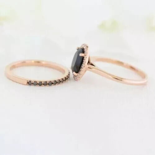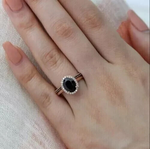 2Ct Oval Simulated Diamond Wedding Bridal Set Ring in 14K Rose Gold Plated