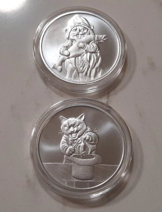 2-FER: ABRACADABRA 1OZ + FISHERMENS FRIEND 1OZ .999 FINE SILVER - PUSS IN BOOTS