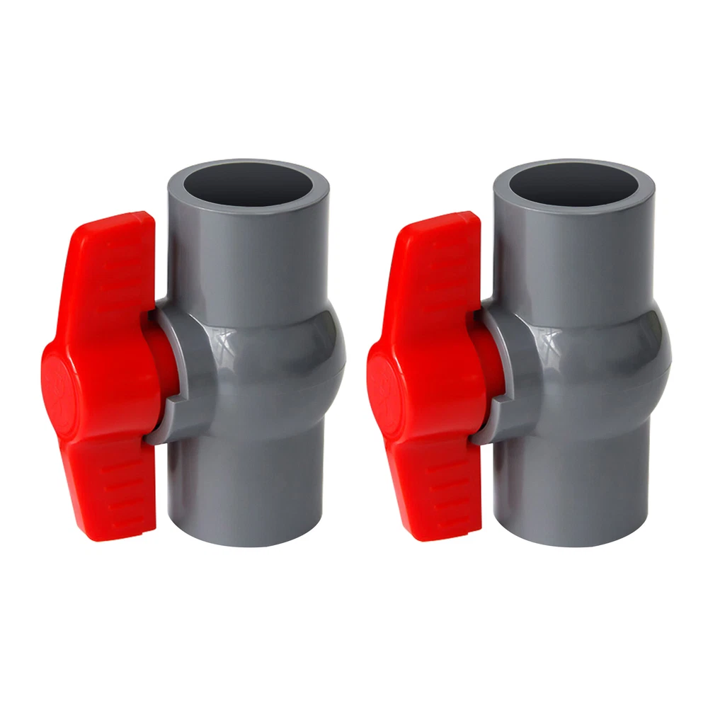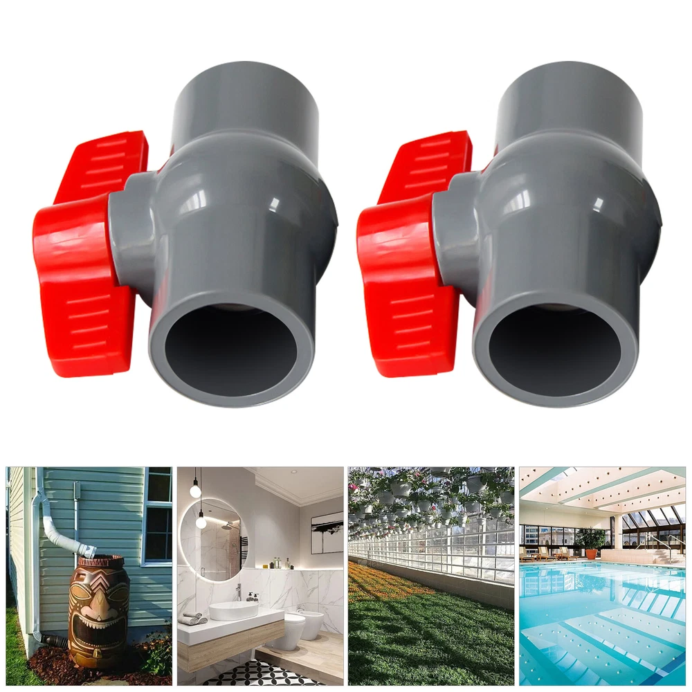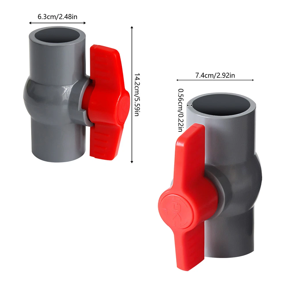 Description This ball valve is made of premium PVC, which is strong and durable. The socket and rubber rings can ensure a tight connection to prevent water leakage. Meanwhile, it can be used many times and is economical. It's your ideal choice! Key Features Premium Material: This product is made of high-quality PVC with high strength, which is non-toxic, lead-free, odorless, wear-resistant, corrosion-resistant, chemical-resistant, shock-resistant, crack-resistant, strong, durable, and not easy to deform. So, it can be used many times, saving you a lot of money. Tightly Connected: The dense socket and rubber rings on both ends can ensure a tight connection between the product and the water pipe, which can prevent water leakage. Highly Functional: It is used for connecting and 2PCS PVC Ball Valves 2 Inch Inner Hole T-shaped Handle Water Air Liquid Valve Description This ball valve is made of premium PVC, which is strong and durable. The socket and rubber rings can ensure a tight connection to prevent water leakage. Meanwhile, it can be used many times and is economical. It's your ideal choice! Key Features Premium Material: This product is made of high-quality PVC with high strength, which is non-toxic , lead-free , odorless , wear-resistant , corrosion-resistant , chemical-resistant , shock-resistant , crack-resistant , strong, durable, and not easy to deform. So, it can be used many times, saving you a lot of money. Tightly Connected: The dense socket and rubber rings on both ends can ensure a tight connection between the product and the water pipe, which can prevent water leakage. Highly Functional: It is used for connecting and controlling flow. When the hole through the ball-shaped disc is aligned with the inlet and outlet of the valve it will allow flow while the sphere is rotated horizontally by 90 degrees it allows the flow to be stopped so that the hole in the sphere is perpendicular to the opening of the valve. A Set of Two: This product includes a total of 2 PVC ball valves , which is enough for you to use. Easy Installation: You only need to apply glue (Not Included) to connect the ball valve and the pipe. This is simple and can save you lots of time and effort. Easy to Clean: The surface of this product is smooth and flat, which is easy to clean. You just need to wipe it with a wet rag. Guaranteed Customer Service: We aim to provide quality products and services. If you have problems, please feel free to contact us. We will reply and solve the problem for you as soon as possible. Details T-shaped Handle: It is ergonomic with non-slip patterns, allowing you to rotate the handle comfortably without hand soreness while preventing slipping. Smooth Inner Wall: It has a smooth inner wall to reduce the resistance of water flow, which can ensure the smooth and rapid flow of water without scaling. Application It is suitable for indoor and outdoor use such as cess-pipe, pool, venting, waste applications, aquaculture, sprinkler system, and agricultural irrigation system. It can be widely used in air, gas, liquid, and steam applications. Specification Color: Grey, Red Material: PVC Style: Modern Inner Hole Diameter: 2inch/5cm Number of Pieces: 2 Maximum Working Pressure: 10kg/22lbs Handle Rotation Angle: Max 90° Water Pipe Connection Method: Adhesive Net Weight: 0.3kg/0.66lbs Gross Weight: 0.6kg/1.3lbs Package Size: 26*16*13cm/10*6*5inch Socket Inner Diameter: 63mm/2.4inch Internal socket Model: 2inch/5cm Outer Diameter: 74.2mm/2.9inch Socket Thickness: 5.6mm/0.2inch Product Height: 142mm/5.5inch Package Included 2* PVC Ball Valves Notes The size of the product is small, please keep it away from children to prevent swallowing. This product is suitable for normal temperature use and can be used for drinking water. Please allow the slight color difference caused by the shooting light and 1-3cm error due to manual measurement, and make sure you do not mind before ordering. Payment Delivery details Terms of sales About us Contact us Payment We accept ebay payment 。 Fees such as import duties, taxes are not included in the item price or shipping costs. These charges are the buyer's responsibility. Delivery details Shipping: 2-9 working days to: USA Terms of sales We maintain high standards of excellence and strive for hundred percent customer satisfaction. Feedback is very important to us. We hope that you contact us immediately before you give neutral or negative feedback, so that we can address your concerns. It is impossible to address issues if we do not know about them! About us Your satis faction is our ultimate goal. We work hard to earn your trust and future business. Our certified technicians have tested each item before shipping. The unit comes with 1 year limited warranty on all manufacturing defects. a) If you receive a defective item, you may return it or ask for a discount. Please contact us within 14 days after you receive the package. b) What you returned must be intact and in its original packaging as re? u. Customer is responsible for shipping costs of the returned item. c) We will cover the cost of shipping back t with the shipping rate indicated in the registration page. We will send you a new unit or refund the full payment you paid. Thank you. Contact us Business Hour Business Hour: Monday To Friday: 8:30 AM to 5:00 PM (Beijing China time) Due to time zones, our reply to your questions may not be immediately. But within above working time, we will reply your email within 24 hours. If it's non-workdays, please kindly be patient and wait till Monday. Please contact us with ebay message. Please feel free to contact us if you have any questions. Monday To Friday: 8:30 AM to 5:00 PM (Beijing China time) Due to time zones, our reply to your questions may not be immediately. But within above working time, we will reply your email within 24 hours. If it's non-workdays, please kindly be patient and wait till Monday. Please contact us with ebay message. Please feel free to conta
