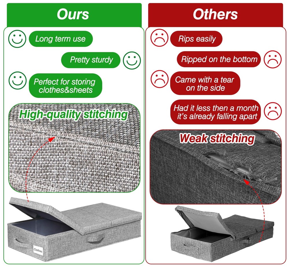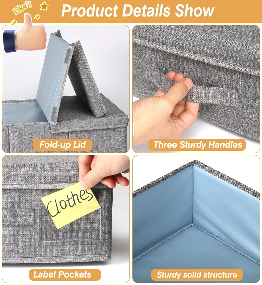 LARGE CAPACITY UNDERBED STORAGE: Each storage bin measures 31.1*15.7*6inch, which fits comfortably under a bed or up on a closet, these under bed storage bins come with a lid that can be slid off in three parts easily to view the contents. Use in the attic, basement, closet, coatroom, bedroom, baby nursery, under cribs and in dorms to protect and seasonal and everyday items, holiday decorations, and memorabilia. Great for use as flat storage bins or underbed storage drawers MULTIPURPOSE STORAGE: Large, sturdy containers for organizing are perfectly sized to slide right under the bed. The under bed organizer is perfect for use as under bed shoe storage organizer, under the bed storage bins, under bed clothes storage, under bed toy storage, under the bed drawers stackable storage bins with lids, under crib storagen STURDY STRUCTURE & STURDY HANDLES: 3 Reinforced sewn-in handles make it easy maneuverability and convenient for you to carry and pull out from under the bed; handy bins make excellent blanket organizers and storage; Lasts longer than underbed storage containers plastic; Keep your bedroom neat and tidy with storage bins with lids that fit your room's existing decor and theme UNDER BED DRAWERS: Comes with of these large-sized under bed storage organizer boxes; Each of these underbed drawers folds up and assembles easily and can be moved instantly, making them incredibly versatile; Transparent Label pockets with a blank card for your remark; With these under the bed storage bins, you can make any room look more put-together and clean VERSATILITY ORGANIZERS FOR BEDROOM: Collapsible, lightweight, and compact, these foldable organizer containers either provide a great storage place, or fold flat for easy storage and portability; Fast assembly gives you instant drawers for under bed without the need for costly construction; A great gift for her/him, gift for women/men, great college essentials storage, college dorm room accessories for college students