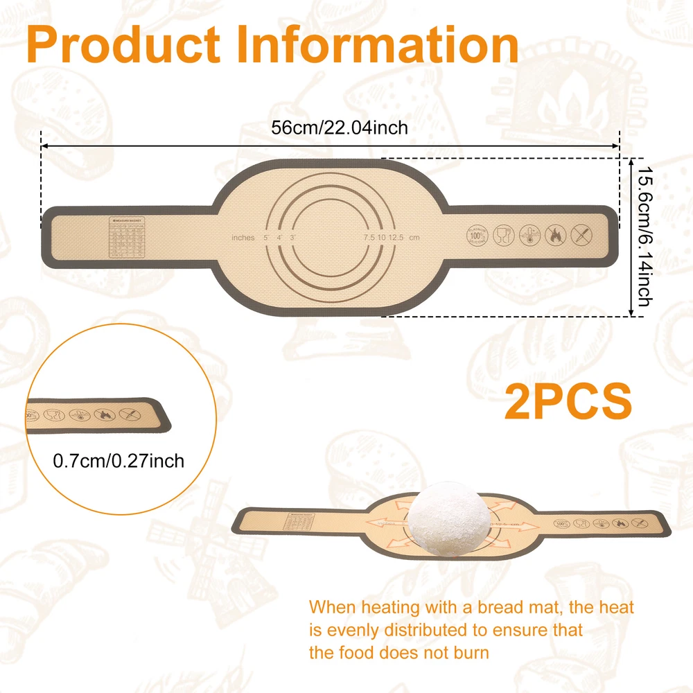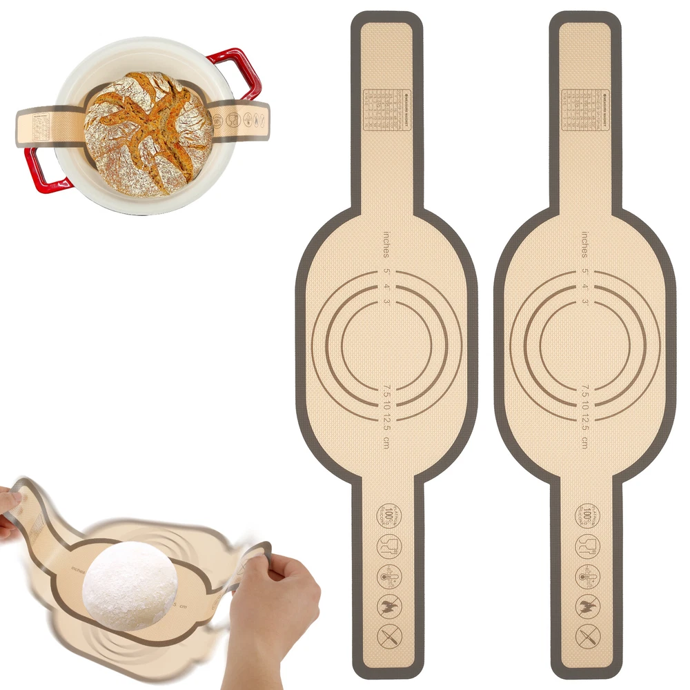 Parts List: 2 × Silicone Bread Slings Highlight description: [High Quality Silicone] This sourdough bread sling is made of high quality silicone, durable and temperature resistant, which can bring you a good baking experience. [Long Handle] This silicone bread sling comes with a long handle, which is comfortable and safe to hold, so you can easily take the dough out of the oven or put it in, without burning your hands, very practical. [Temperature Resistant] This silicone baking mat sling has good high temperature resistance, can withstand temperatures ranging from -40° F to 450° F. When the baking mat is heated in the oven, it can make the food evenly heated and won't scorch the food, it is a must have tool for cooking or baking in your daily life, suitable for long term use. [Non Stick and Effortless to Clean] Our silicone bread baking mat has a non stick surface, which makes it easy to remove the bread from the oven without excessive greasing or flouring. It is also effortless to clean, you just need to rinse it in water or throw it in the dishwasher to save time and effort. No more struggling with sticky dough or messy cleanup. [Reusable] This silicone Dutch oven liner is a reusable baking mat, you don't need to buy another baking mat, which is frugal and eco friendly, reducing waste. Detailed description: Description: If you also like to bake bread at home, but always worry that the dough is hard to transfer to the oven, try our silicone baking mat. This silicone bread sling with long handle can help you quickly transfer the dough to the preheated oven without burning your hands, it is a very practical baking gadget. Key Feature: Even Heating: This silicone bread baking mat has good heat resistance and can withstand temperatures ranging from -40°F to 450°F, it can be evenly heated in the oven to avoid scorching your food, giving you a quality baking experience. Easy to Store: This sourdough bread sling measures 56 x 15.6 x 0.7cm / 22 x 6.14 x 0.3 inches. The soft silicone texture is lightweight, easy to fold and store, does not take up space. Specification: Product Name: Silicone Bread Sling Color: As Shown Material: Silicone Size: 56 x 15.6 x 0.7cm / 22 x 6.14 x 0.3 inches Note: 1.There may be slight differences between the picture and the actual color of the commodity. We will try our best to show you the exact color. 2.Please allow slight dimension difference due to manual measurement.