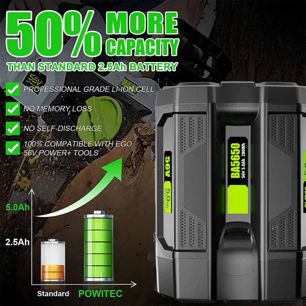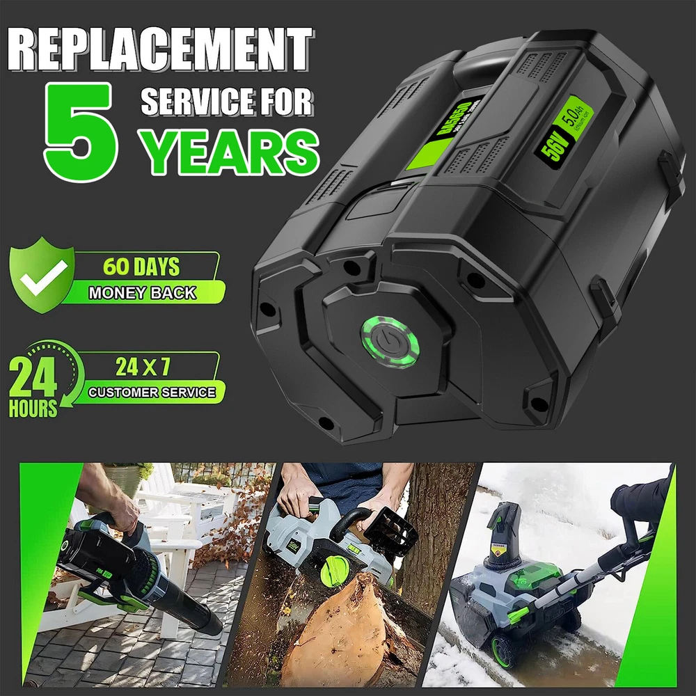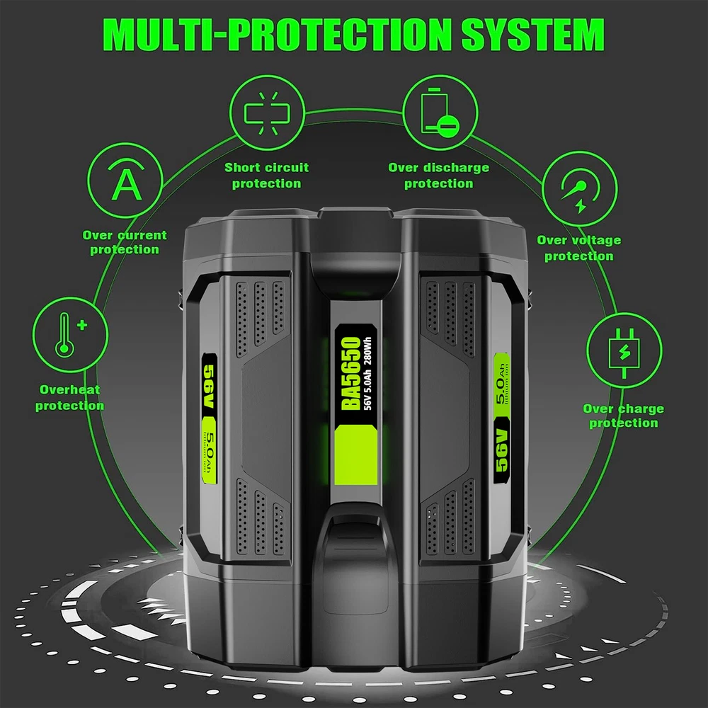 eBay 2pack 5 Ah Lithium Ion Battery For EGO POWER+ 56 Volt BA2800T BA1400 BA2240 New 2pack 5 Ah Lithium Ion Battery For EGO POWER+ 56 Volt BA2800T BA1400 BA2240 New DSANKE® OFFICIAL Ask a question Description Shipping Warranty About Us Description Brand DSANKE Battery Voltage 56 V Battery Type Lithium-ion (Li-Ion) Capacity 5000mAh / 5 Ah Color Black Condition Replacement Battery, Brand New Compatible Brand For E.G.O Package Carton Warranty 5 Years Warranty + 60 Days Money Back Shipping Free shipping,24H Dispatch,1-6 days delivery Certificate CE PSE ROHS FCC Features: ✔【Battery Specifications】 Type: Lithium-ion | Voltage: 56V | Capacity: 5000mAh | Watt: 280W, Delivers up to 3X the run time than EGO 56V 2.5Ah battery. ✔【100% Compatible】 Replacement for EGO 56V BA2800 BA2800T BA4200 BA4200T BA1400 BA1400T BA5600T BA2240 BA1120 Battery, 100% Compatible with EGO 56V CS1604 CS1804 CS1403 HT2400 LB6504 LB5804 LB6500 LB4800 HTA2000 STA1500 PH1400 PSA1000 Tools,Perfect fit all EGO 56V Chargers and 56V Tools. ✔【Why Choose Us?】 Our more powerful 56V battery delivers up to 4X the run time of the 2.5 Ah battery.Built-in ECP smart protection chip provide overcharge and overdischarge protection to extend 4X battery life. Use A-class Lithium-ion Cells to make the battery charge and discharge cycles >1000 times!! ✔【Safety & Reliable】 All of the products are CE FCC PSE ROHS certified, tested by manufacturer to match OEM products and exported all around the world.No memory effect, can be charged or discharged as needed without losing capacity. ✔【Smart LED Power Indicator】 Installed with a smart 5-LED power indicator, and the conspicuous green light helps to check the power more conveniently. Also, an external waterproof shell prevents water from seeping in. Allows you to quickly check the power with one click even when your hands are wet. Fit for EGO Nexus Portable Power Station PST3040/PST3041/PST3042 Compatible with EGO 56V Power Tool & Charger Compatible Tool LB Series: LB6504 LB5804 LB6003 LB5302 ST1502LB LB4803 LB6500 LB6000 LBX6000 LB5800 LB5300 LB4800 Compatible Tool SNT Series: SNT2405 SNT2103 SNT2400 SNT2100 Compatible Tool CS Series: CS1604 CS1804 CS1800 CS1600 CS1400 CS1403 Compatible Tool HT Series: HT2411 HT2410 HT2400 HTA2000 HTX6500 Compatible Tool LM Series: LM2135SP LM2133 LM2102SP LM2142SP LM2022SP LM2130SP LM2100SP LM2020SP LM2101 LM2021 LM2130 LM2100 Compatible Tool ST Series: ST1521S ST1524 ST1511S ST1502SA ST1502LB ST1502XY ST1504SF ST1520S ST1500SF ST1500XY STA1500 Compatible Tool PH Series: PH1400 PSA1000 CTA9500 EP7500 BBA2100 RBA2100 PTX5100 PSX2500 PPX1000 Compatible Tool ME Series: ME0801 ME0800 MST1501 MHC1502 MHT2001 MBB2100 MPS1000 MPS1001 Compatible battery models: BA1400T, BA4200T, BA4200, BA2240, BA2800, BA1400, BA1120, BA2800T Compatible charger models: CH2100 / CH7000 / CH2800D / CH5500 What's Included: 2x 5000mAh replacement Lithium Ion Battery for EGO 56V MAX tool 1x User Manual Note: 1. The battery must be FULLY charged before first use. 2. The battery is stored in a cool and dry place. 3. Do not Separation, extrusion, and impact. 4. Do not put battery into water and fire. 5. Keep away from children. Shipping Warranty About Us Shop related items
