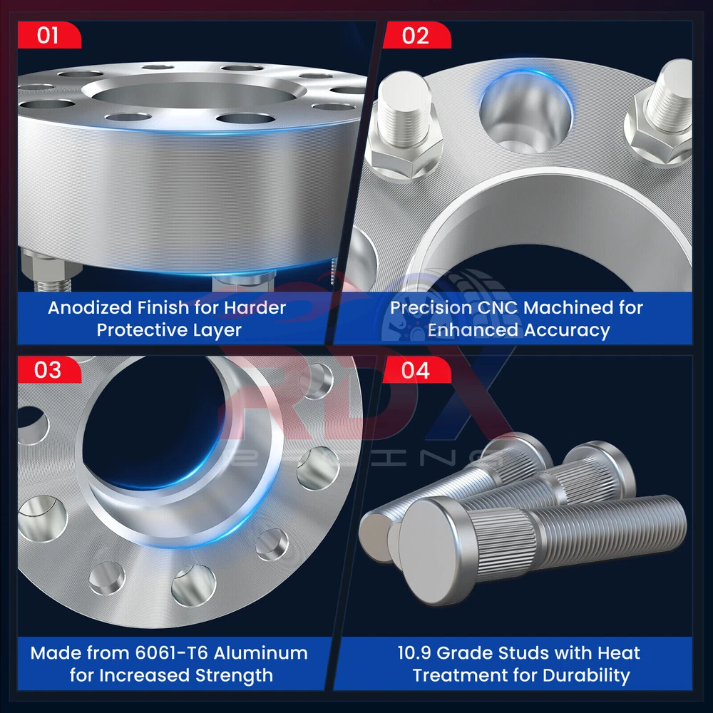 Adapter Thickness: 25mm (1 Inch) Each Side Quantity: 2 Pieces Bolt Pattern: 5x114.3 (Hub) to 5x127 (Wheel) Center Bore: 73mm Thread Pitch: 12mm X 1.5 Anodized Silver Adapter Type: Bolt pattern conversion adapter (Lug centric) Carbon Steel Wheel Studs (Extremely Durable) CNC Machined With Precise Fitment & Consistent Quality This adapter set includes open end lug nuts to secure the adapters onto your factory hubs Your Factory wheel studs may extend past the surface of the wheel adapters. In this case you will need to: 1. Adjust the factory studs to a shorter length. 2. Check that the wheels have open slots (cavities) between the fastener holes. 3. Replace the factory studs with a new set of shorter studs.