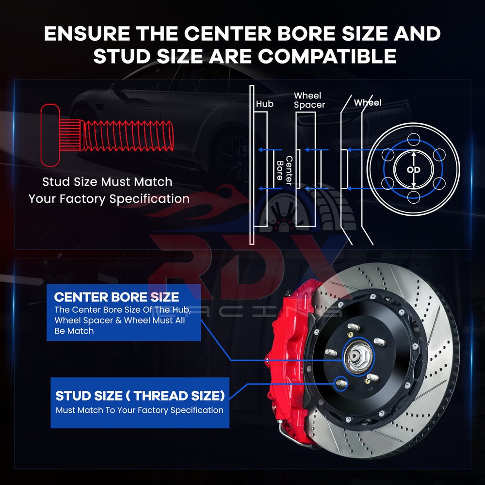Adapter Thickness: 32mm (1.25 Inch) Each Side Quantity: 2 Pieces Bolt Pattern: 6x127(6x5") & 6x135 (Hub) to 6x139.7(6x5.5'') (Wheel) Center Bore: 87.1mm Thread Pitch: 14mm X 1.5 Adapter Type: Bolt pattern conversion adapter (Lug centric) This adapter set includes open end lug nuts to secure the adapters onto your factory hubs Your Factory wheel studs may extend past the surface of the wheel adapters. In this case you will need to: 1. Adjust the factory studs to a shorter length. 2. Check that the wheels have open slots (cavities) between the fastener holes. 3. Replace the factory studs with a new set of shorter studs.