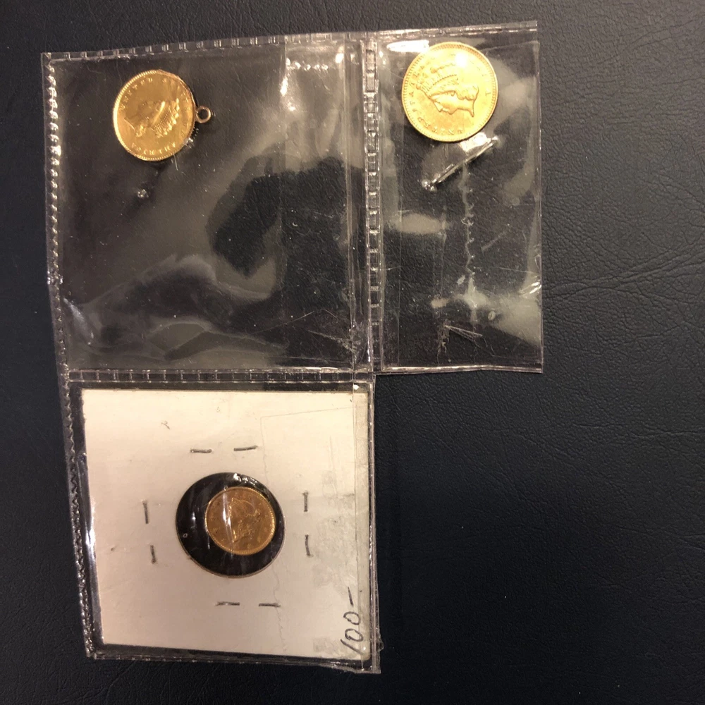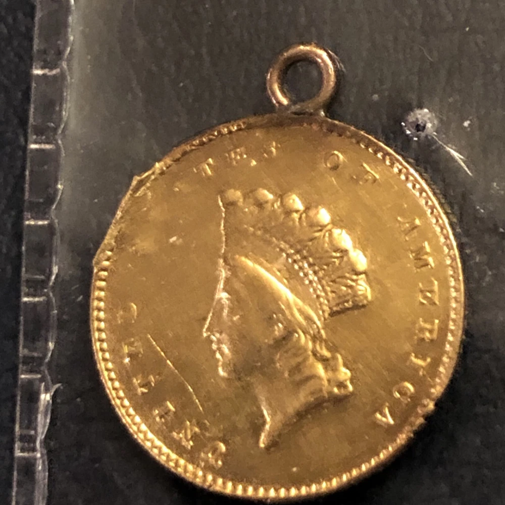 You get all 3 love tokens, comprising all three types of the $1 gold pieces, including the very tough type 2. In my love token collecting career, I always tried to find love tokens with no loops or holes so that one side looked like a regular coin. This is a lot more difficult than you think. You could look through a hundred love tokens and not find one. I eventually found excellent examples of this in the type 1 and 3 dollars, but never found a type 2 that fit this criteria. That was hard enough to find in any condition. Free shipping. Check my perfect 20 year feedback and buy with confidence. Please see my other auctions for more coins and fine jewelry.