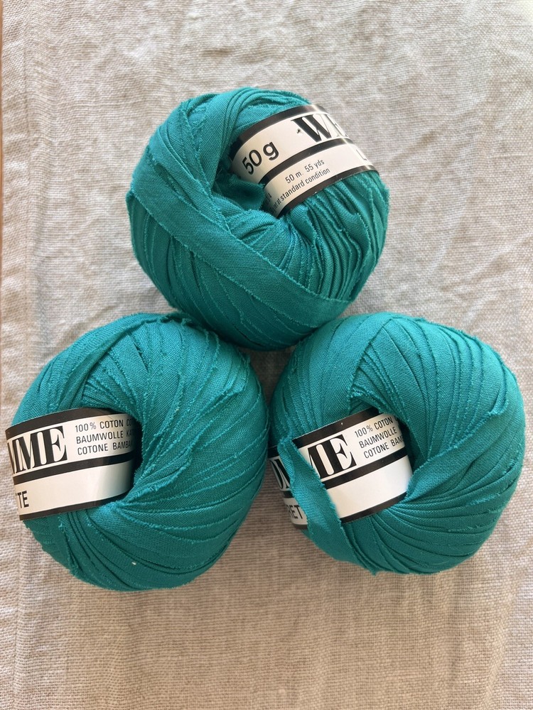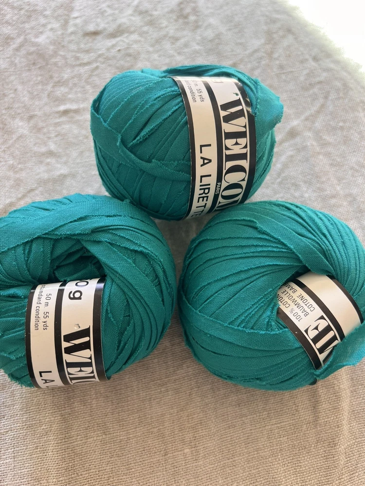 3 Balls Welcomme La Lirette Ribbon Tape Yarn in Turquoise 100% Cotton Rare Discontinued