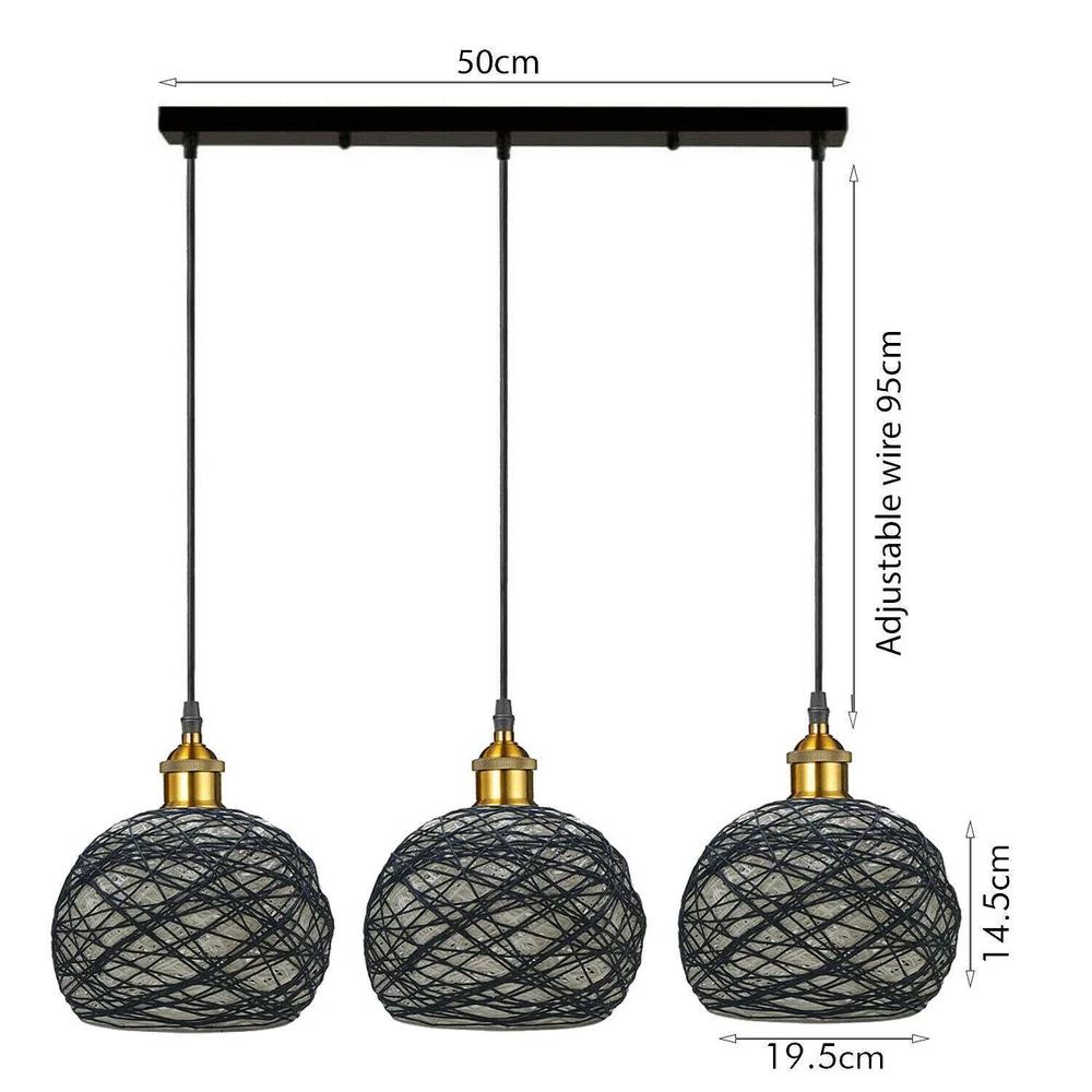 Product Description 100% brand new and high quality Features: Not only lighting but also decorating your house. It will make your home more interesting and attractive. E27 lamp base, you can choose any bulbs with the E27 interface as you want. Perfect to create a warm, romantic atmosphere for your home, restaurants, and cafes. Specifications : Base type: E27 Power source: AC110V-250V Lamp holder quantity: 3 Item color: Black Material: Metal + Rattan Wire length: 95cm (PVC Cable) Ceiling plate: 50cm L x 2.5cm H Package included: 1 X Ceiling rose 3 X Lampshade 3 X Pendant Light with 95cm adjustable wire (Bulbs not included) 1 X Assemble Parts Note: Item color displayed in photos may be showing slightly different on your computer monitor since monitors are not calibrated same. Delivery times can vary depending on the destination location. We would advise against booking an Electrician or fitter until you have received all items in satisfactory condition.