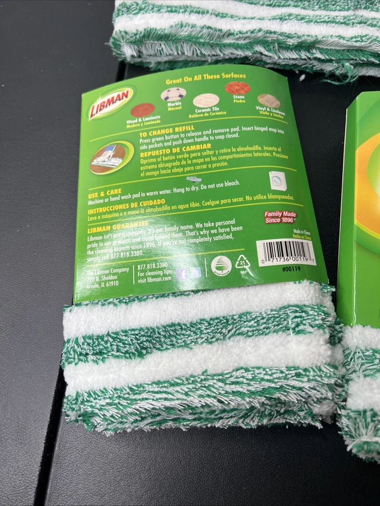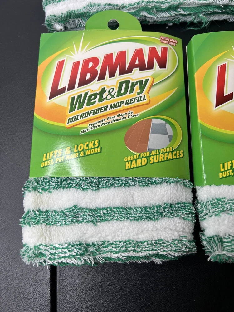 3 ~ Libman 18.5" x 5" Wet & Dry Microfiber Mop Refill Reusable Machine Wash -. Shipped with USPS Ground Advantage.