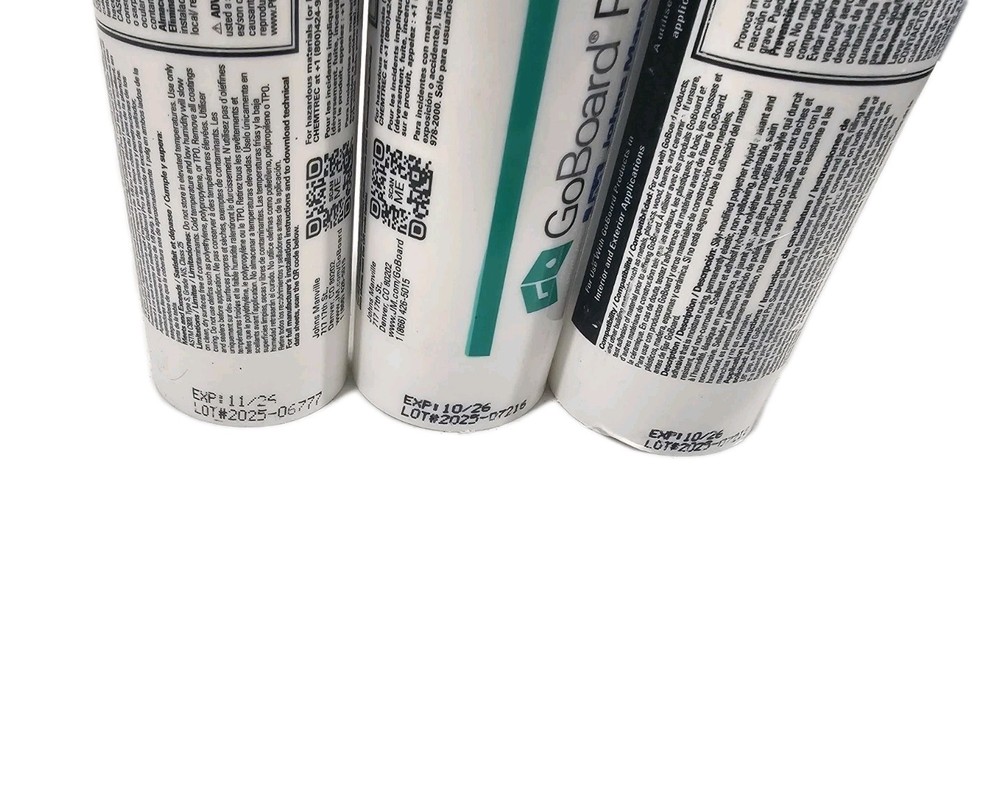 The product is a 3 pack of White GoBoard PRO Sealant in a 10.3oz tube. This joint sealant is made in the United States and is designed for sealing gaps and joints in GoBoard. It is a high-quality product from a trusted brand, ensuring a durable and waterproof seal for your home or garden improvement projects. Expiration dates are 10/26, 11/26, and 10/26 Sold as Pictured New 3 Pack GoBoard PRO Sealant White Blanco Blanc 10.3oz Tube Joint Sealant New