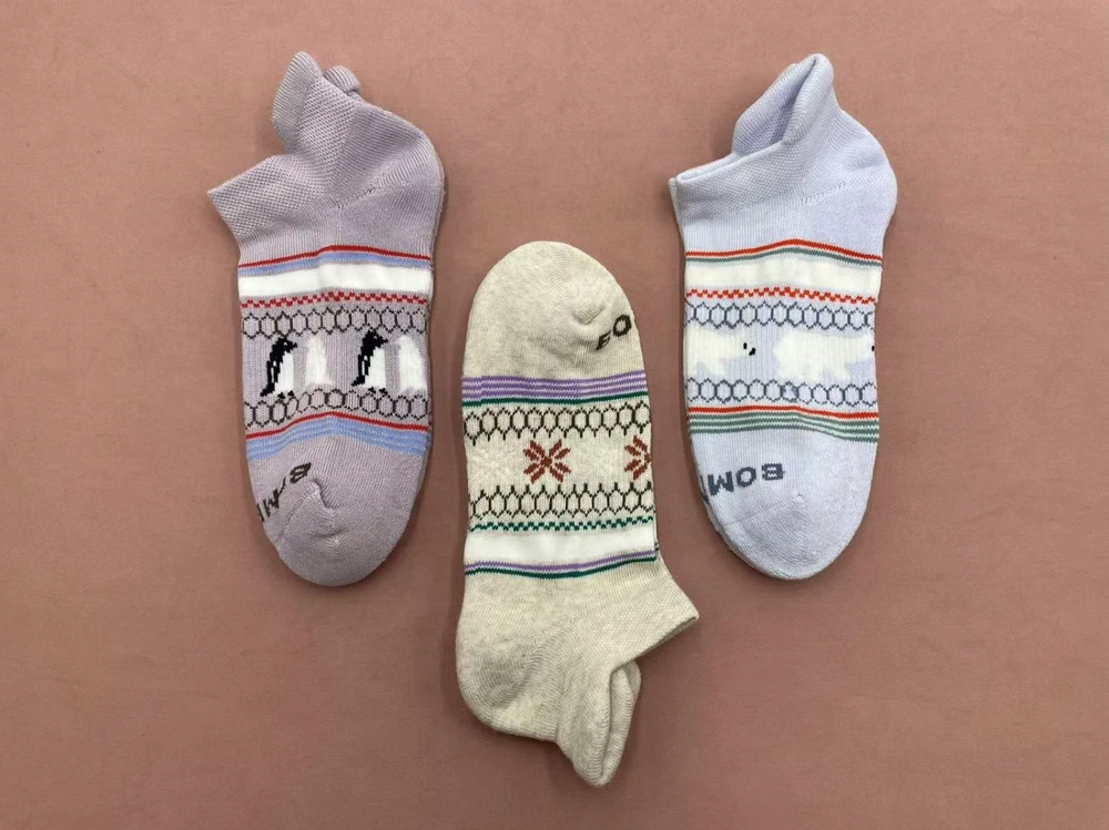 3 Pairs Bombas Women's All-Purpose Ankle Sock 3 Colors Size Medium 8-10.5 - Original tag Description The more Bombas in your sock drawer, the happier your feet will be. The happier your feet are, the happier you will be. That’s just science. Features Extra-Long Staple Cotton Cushioned Footbed Honeycomb Arch Support System Blister Tab Y-Stitched Heel Seamless Toe Materials & Care Machine wash cold on gentle cycle, do not bleach, tumble dry low, do not dry clean or iron.